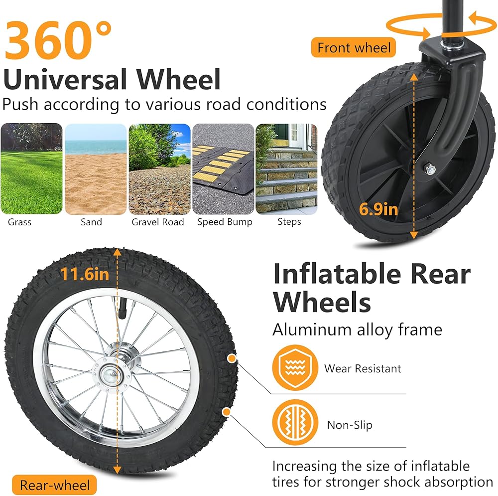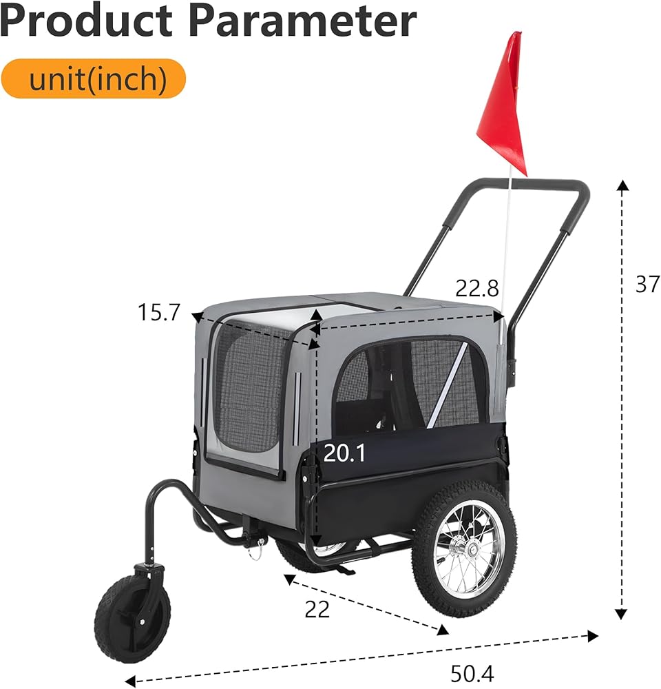 360 Degree Universal Wheel: With its 360-degree rotating front tire, our dog bike trailer offers unmatched maneuverability. This function makes it simple and effortless to navigate around corners and through confined spaces, making bicycling or walking a hassle-free experience.dog stroller pet stroller dog bike trailer