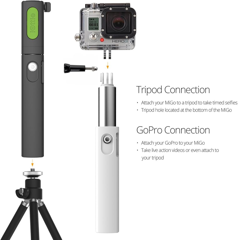 Extends from 8.7 inches to 32 inches to give you the ultimate selfie length. Need a wider shot, The MiGo is Tripod Compatible