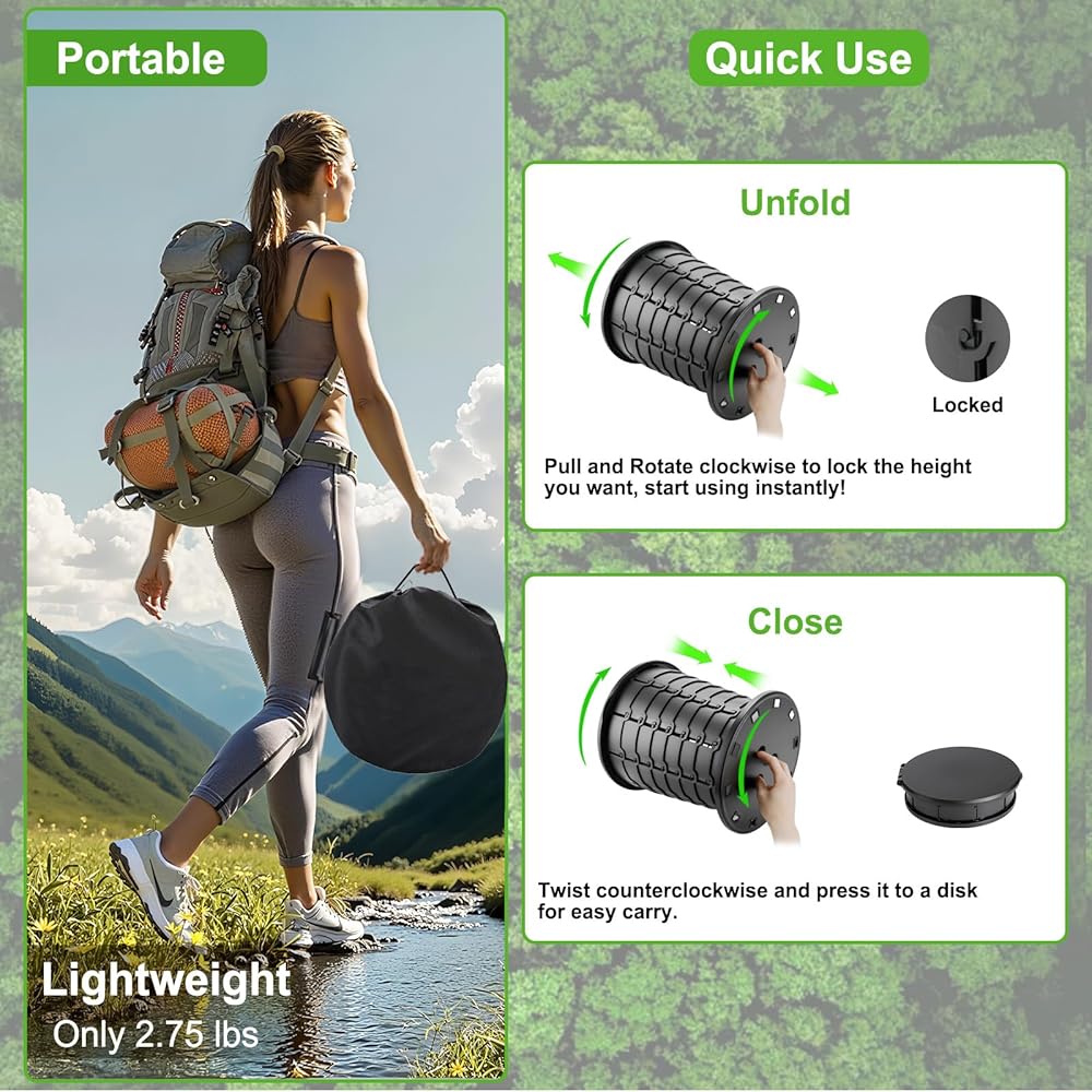 🏕️【سريع وسهل】 سحب واحد ولفه في اتجاه عقارب الساعة لبدء الاستخدام على الفور! تأكد من قفل جميع الأبازيم بإحكام قبل الجلوس. بعد الاستخدام، ما عليك سوى تدويره عكس اتجاه عقارب الساعة والضغط عليه على القرص لسهولة النقل. الحزام القابل للتعديل يجعل من السهل حمل نونية بورتا للتخييم في يدك أو تعليقها على كتفك. يمكنك وضعها بسهولة في حقيبة الظهر أو الأمتعة أو السيارات.