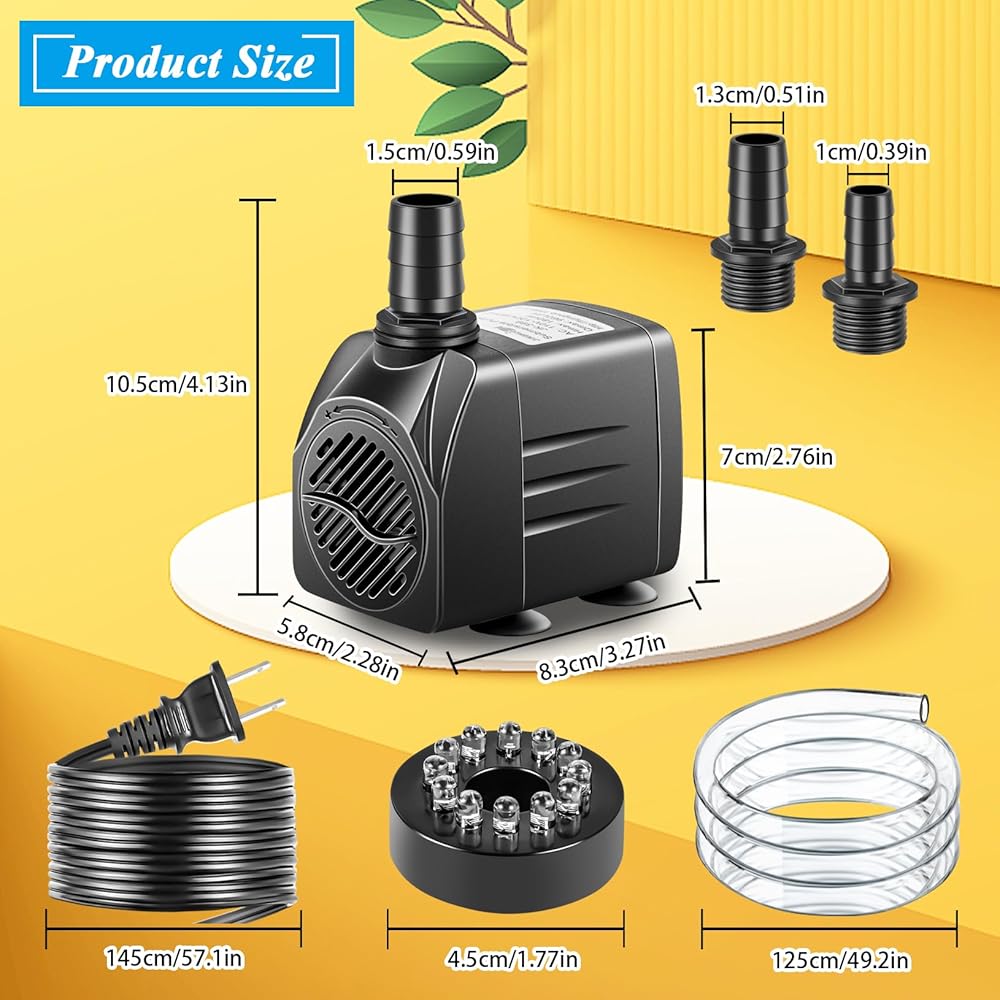【سهلة الاستخدام】المكونات سهلة التركيب، مما يسمح لك بتوصيل المضخة بالنافورة أو البركة دون عناء. تصميم سهل الفصل والتنظيف يضمن طول عمر المضخة الغاطسة.