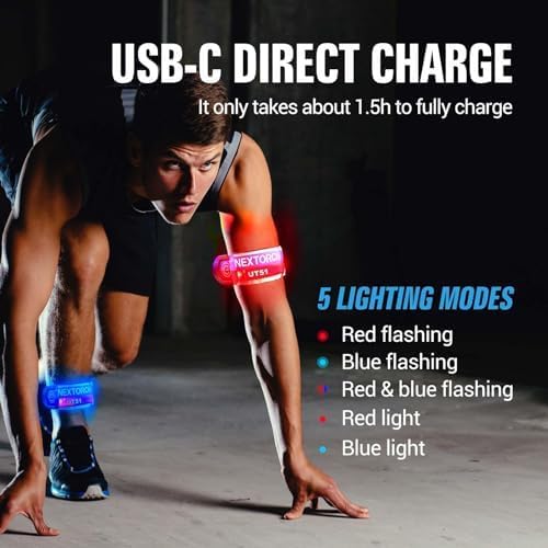 NEXTORCH LED صفعة أضواء سوار المعصم القابلة لإعادة الشحن أضواء معصمه السلامة (1 حزمة) وضوح عالية عاكسة LED تضيء الفرقة صفعة توهج سوار السلامة المعصم الفرقة ركوب الدراجات الجري المشي الركض والعتاد