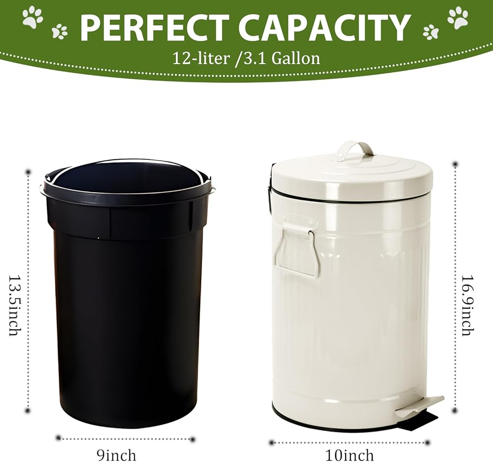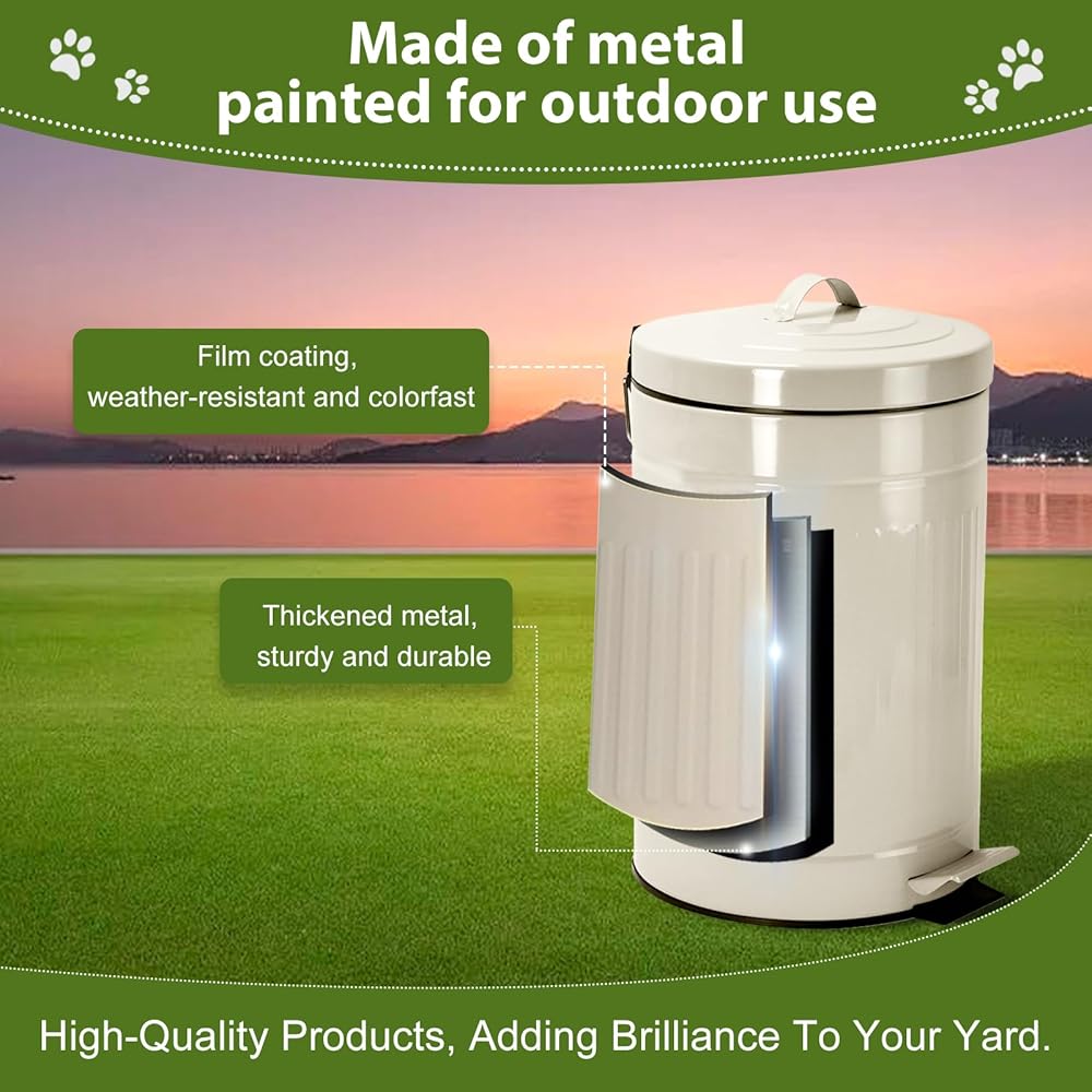High-Quality Material: The dog poop trash can outside uses an outdoor UV coating that is rust-proof, crack-resistant, and fade-resistant. With a capacity of 12 L, provides enough storage space for your garbage before garbage collection day