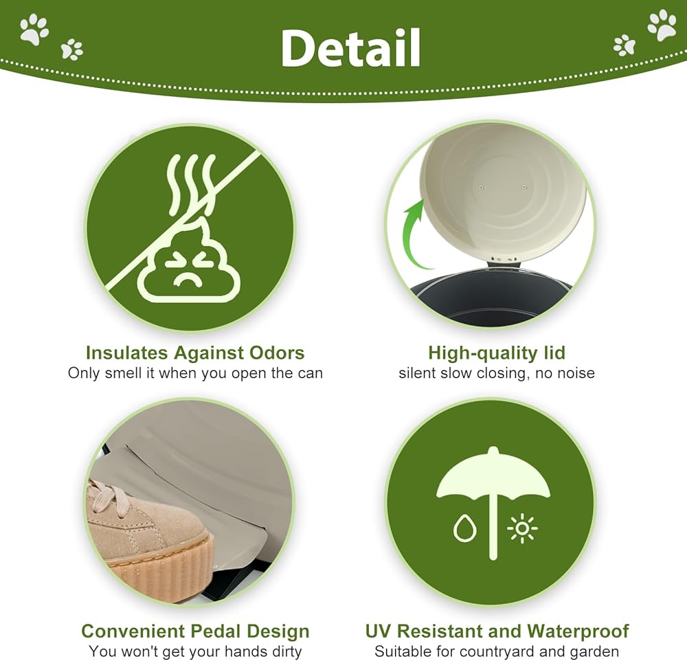 Versatile Use: Dog poop trash can is suitable for outdoor and indoor use; You can place it in your garden or home to collect waste; If you have dogs at home, this is the perfect bin to contain their poop, keeping your yard clean and more beautiful