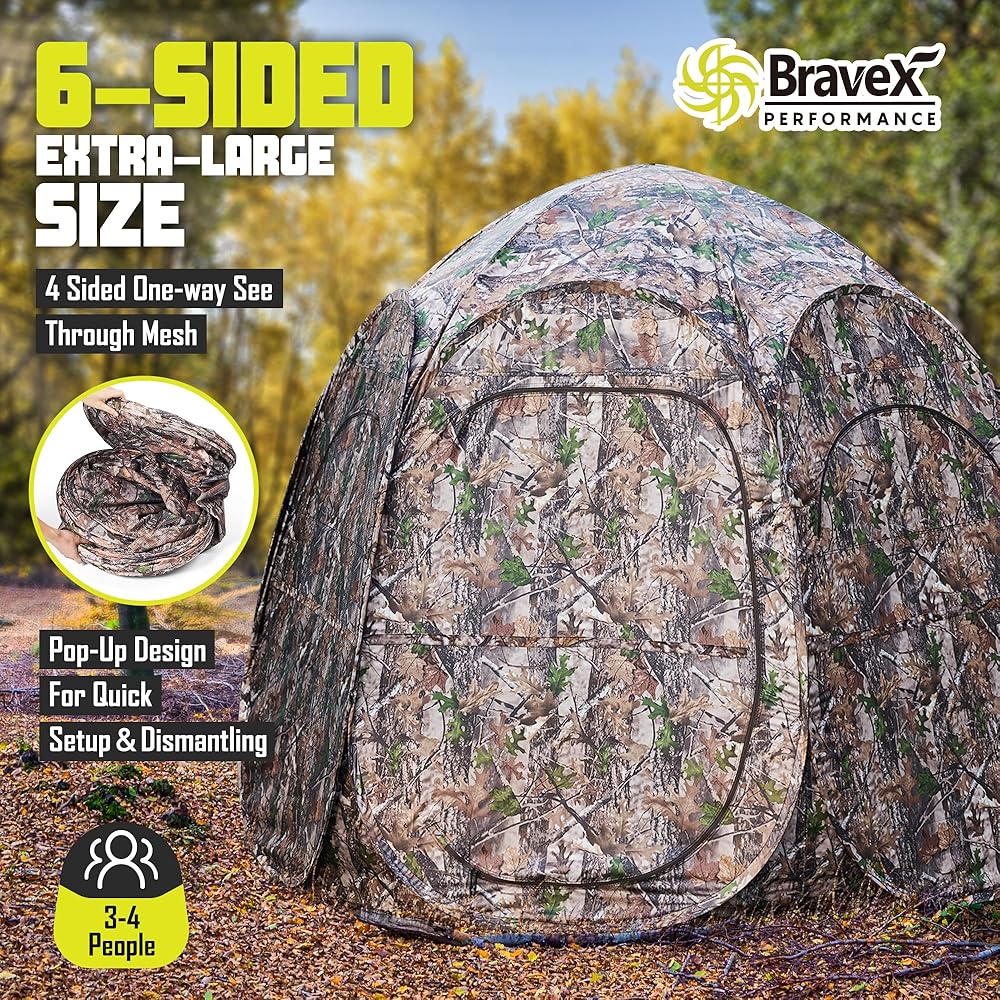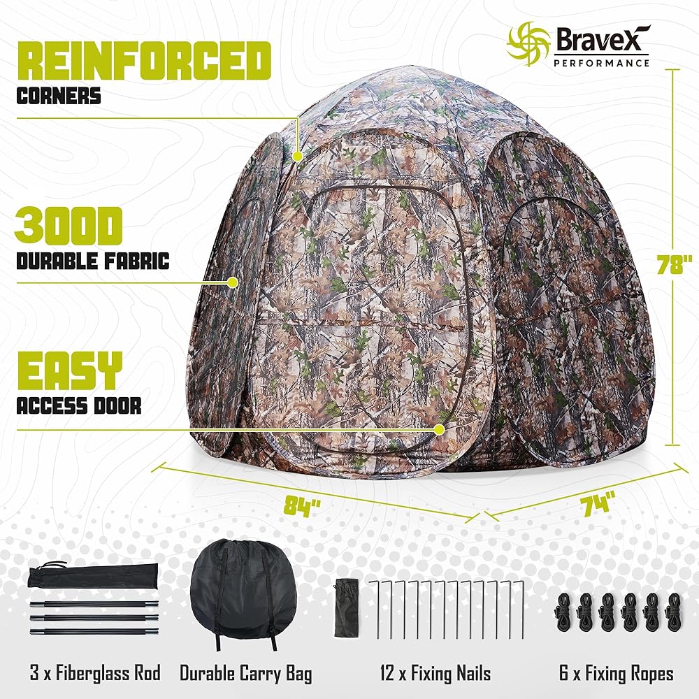 صيد أرض عمياء محمولة، 30% أكبر من الداخل 4 أشخاص 300D بوليستر ستائر صيد متينة خيمة منبثقة لصيد الغزلان والديك الرومي مع حقيبة حمل 84 بوصة × 74 بوصة × 78 بوصة ارتفاع (مموه)