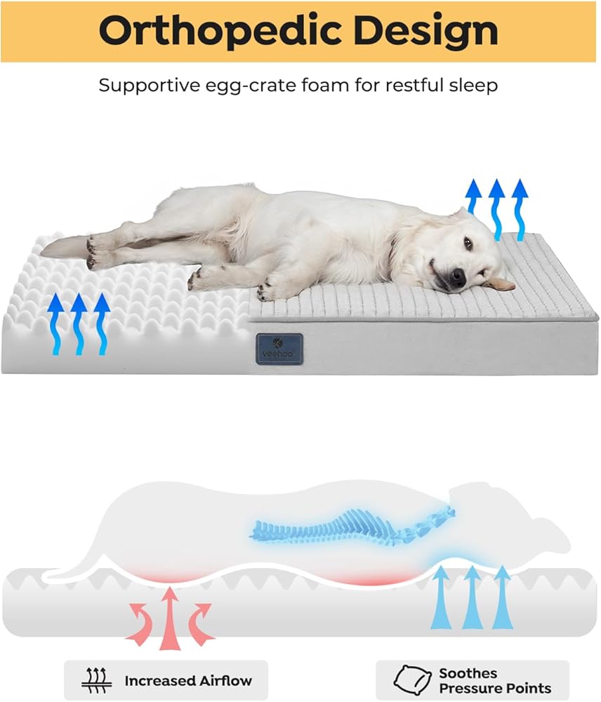 4" Superior Orthopedic Support: Our XL dog bed is designed with 4-inch high-density egg-crate foam to provide optimal support and alleviate joint pain, making it especially suitable for dogs suffering from arthritis or other joint issues.