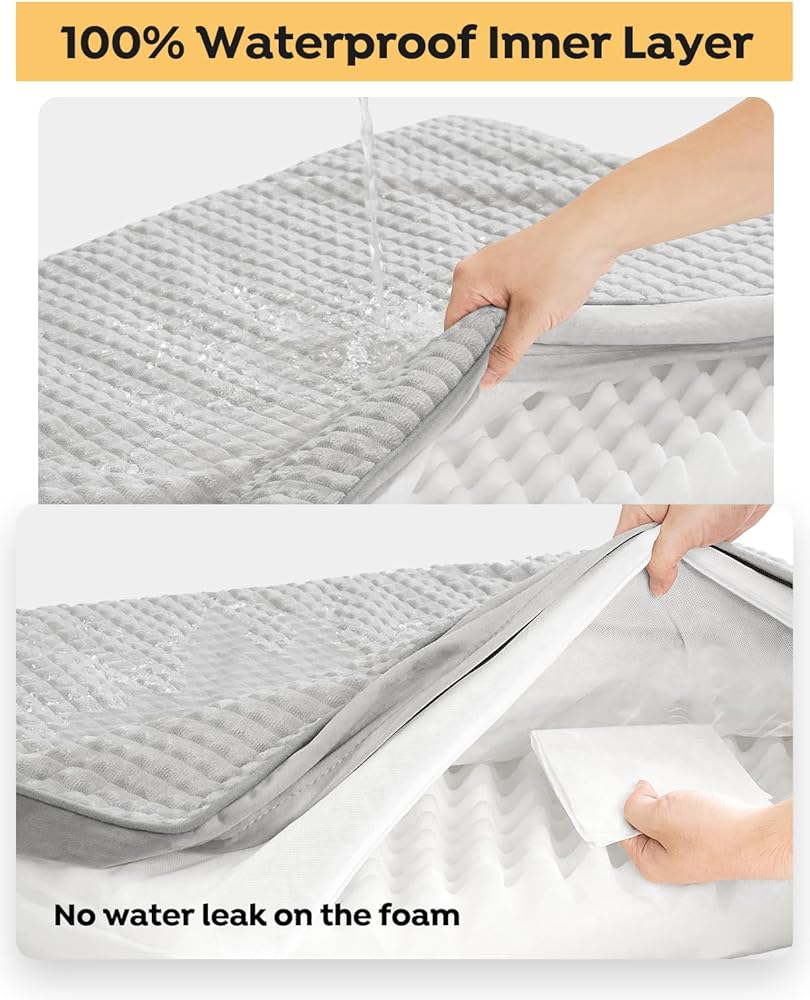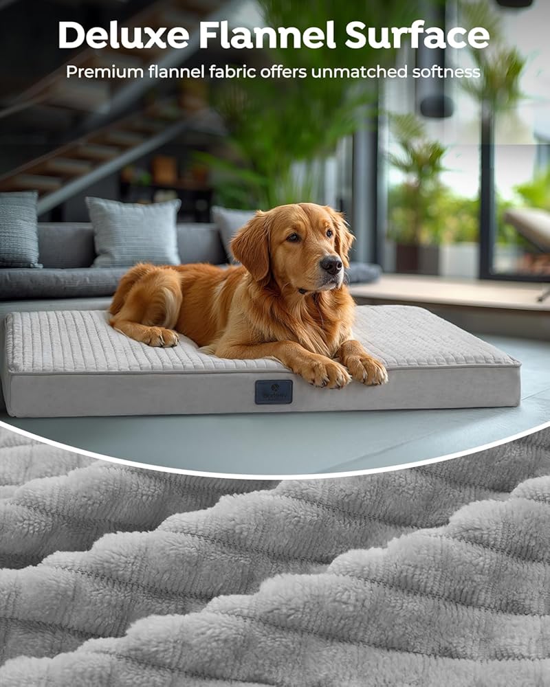Cozy Flannel & Protective Waterproof Layer: Indulge your furry friend with the luxurious feel of our flannel-covered dog crate bed, thoughtfully paired with a waterproof inner layer that keeps the foam dry and comfortable.