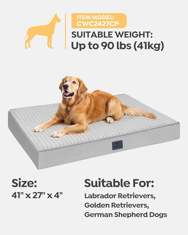 Available In 5 Sizes For Dogs Of All Breeds: The XL dog bed is 41"x27"x4" for large dogs up to 90 lbs like Labrador Retrievers, and fits standard 42-inch crate; If you're unsure about size, we suggest going one size up for extra comfort and wiggle room.