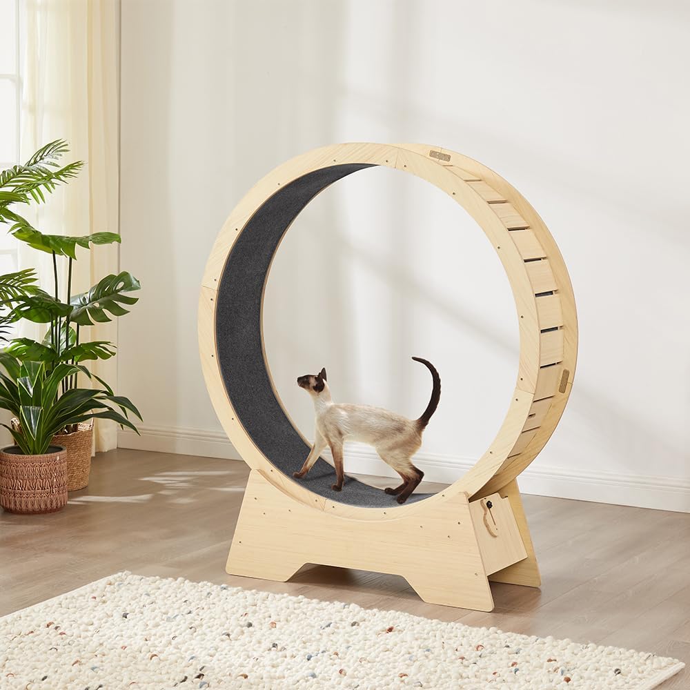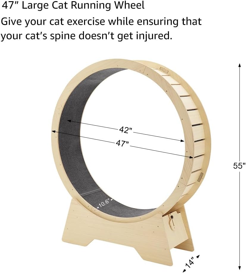 unipaws 47 بوصة عجلة تمرين كبيرة للقطط، عجلة جري للقطط مقاس XL داخلي مع مدرج مغطى بالسجاد، جهاز مشي للقطط لوزن اللياقة البدنية، عجلة عداء للقطط لحياة أطول لكيتي