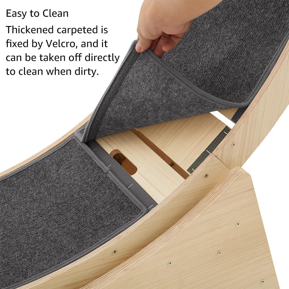 • سهلة التنظيف: يتم تثبيت السجاد السميك على سطح عجلة المشي للقطط بواسطة شريط فيلكرو، ويمكن خلعه مباشرة للتنظيف عندما يتسخ.