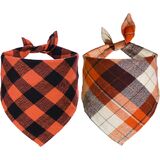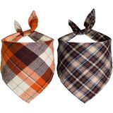 STMK 2 Pack Fall Dog Bandanas, Halloween Thanksgiving Day Dog Bandanas, Multi Sizes Orange Plaid Holiday Bandanas for Small Medium Large Dogs