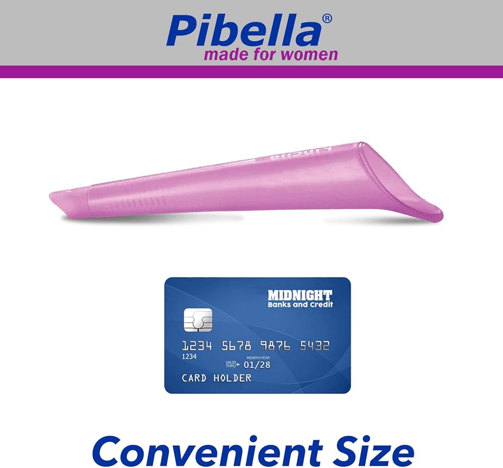 REUSABLE + EASY TO USE: Simply move undergarments to the side, insert Pibella tongue slightly and hold against your body, aim and go; If positioned correctly, there will be no leakage; Pibella can be wiped clean, reused, and stores in its own zip bag