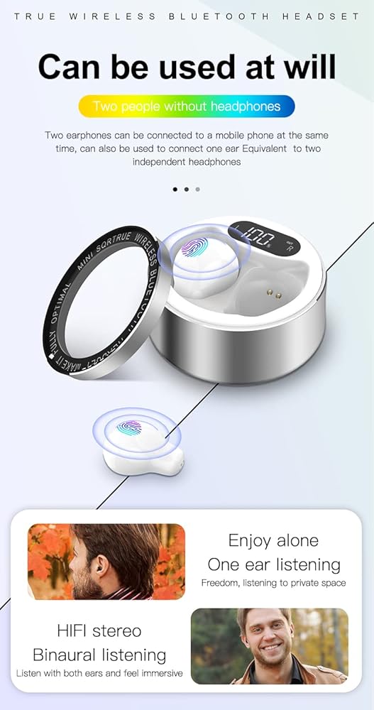 【Random Use Single Earbud】Upgraded technology allows you to randomly pick one mini earbud(either left or right) for instant use when you are driving on the road or working in the office, with no need to worry if it's the master earphone and working right away