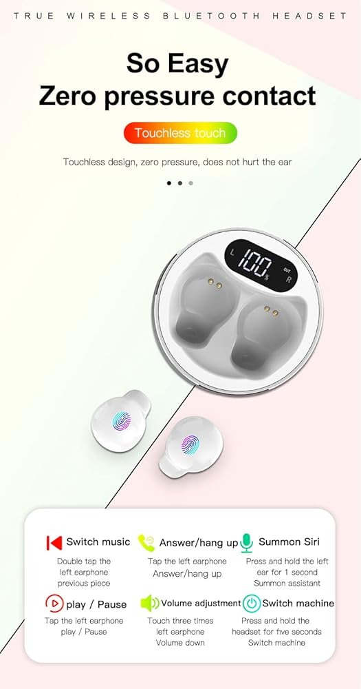 【Touch Control】 Features with touch control sensors, hands free earphones allows you to play or pause music, start/end/reject calls, previous or next song, enable Siri, all with a simple press on the ear.