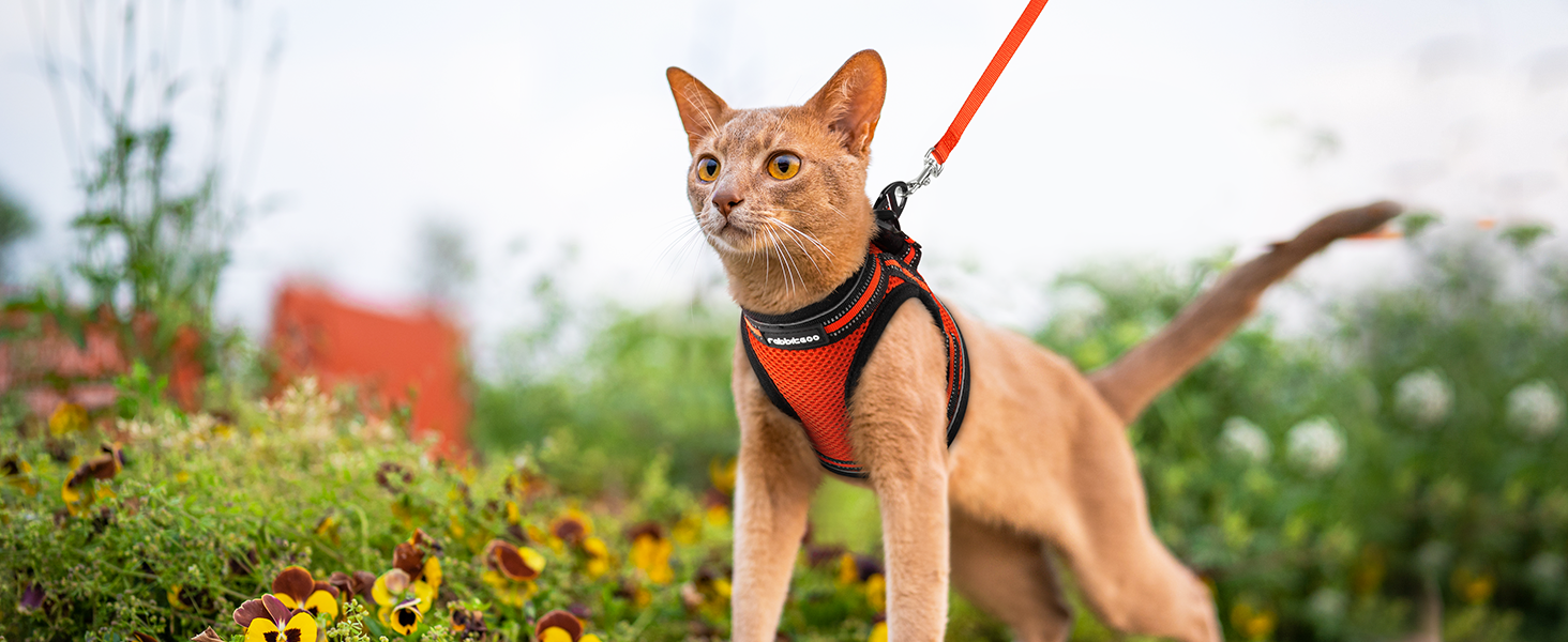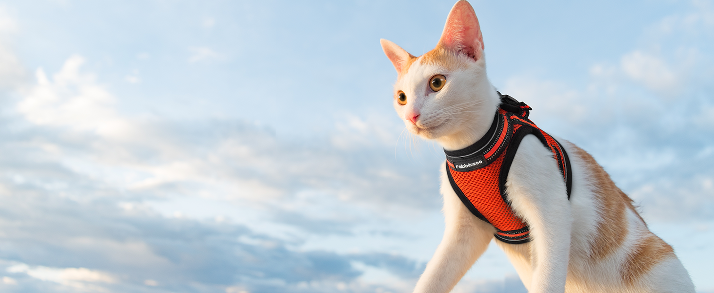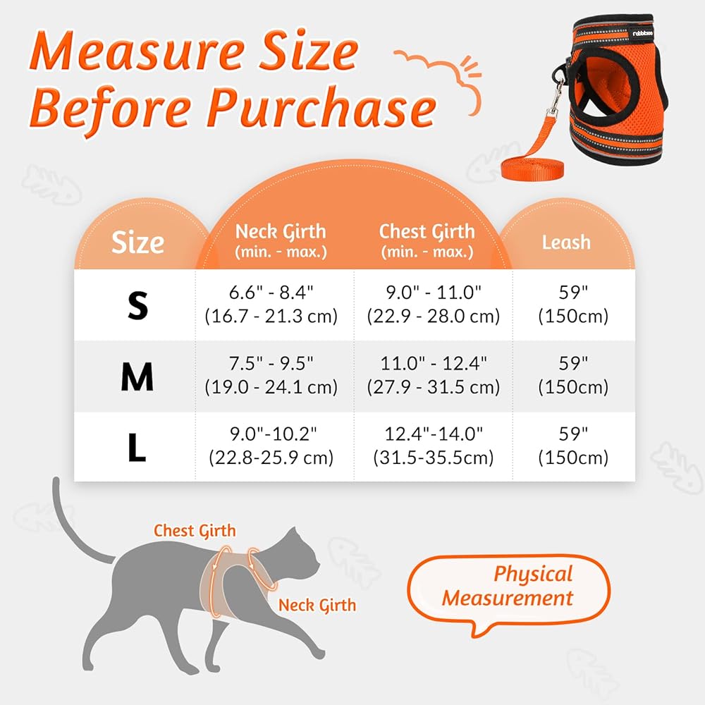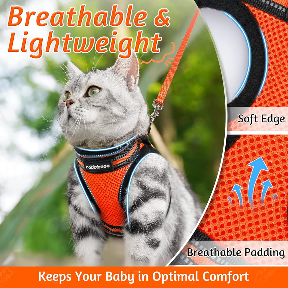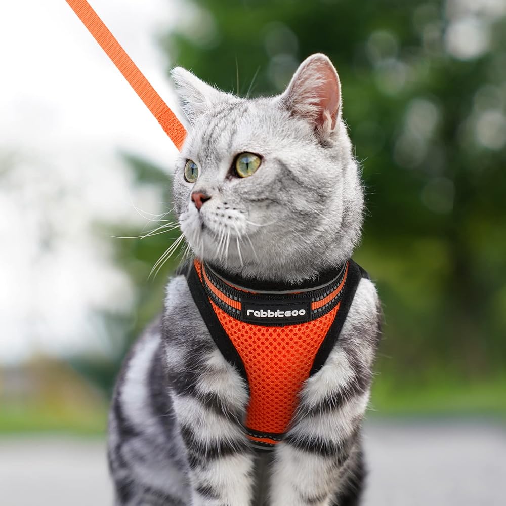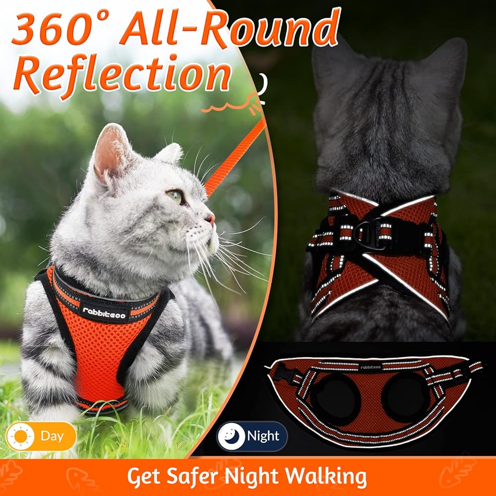 مجموعة سرج ومقود للقطط من Rabbitgoo للمشي ومقاومة للهروب، سترة قطط ناعمة قابلة للتعديل مع شريط عاكس للقطط، سترة مريحة للاستخدام في الهواء الطلق، برتقالي، مقاس M