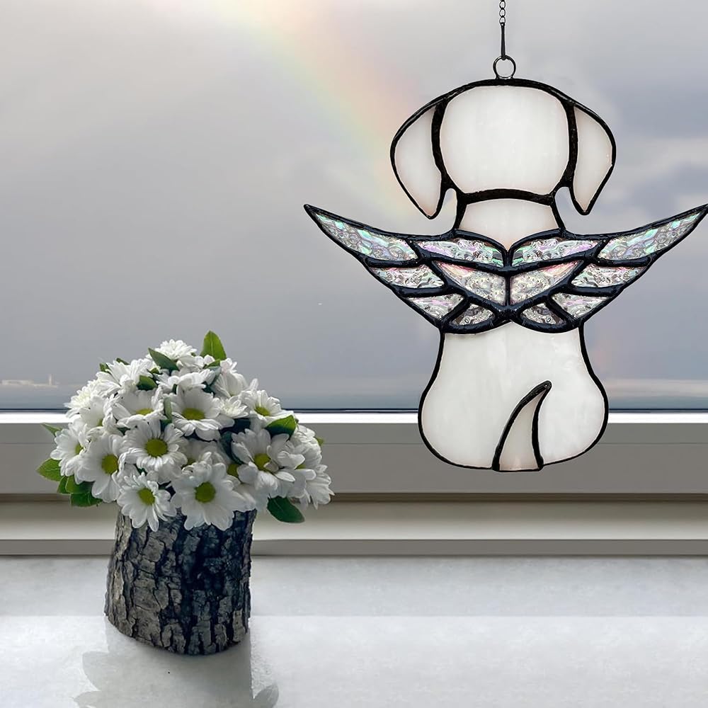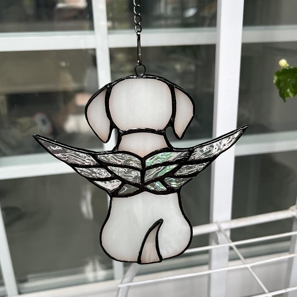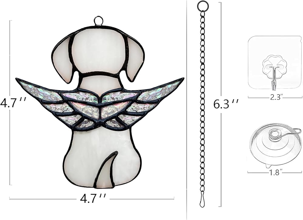 【هدايا تذكارية فريدة من نوعها للكلاب الملائكية】عند البحث عن هدية لتكريم شخص مات كلبه، فإن صائد الشمس المعلق على شكل كلب ملائكي من الزجاج الملون الجميل هو الخيار الأمثل. يتميز كلبنا الواقي من الشمس بجناح ملائكي فريد على الظهر. هي طريقة جميلة وصادقة لتذكر وتكريم كلبك المحبوب الذي وافته المنية. إنها خسارة مؤثرة لهدية تعاطف الحيوانات الأليفة التي عانت من فقدان جرو أو أي رفيق فروي.
