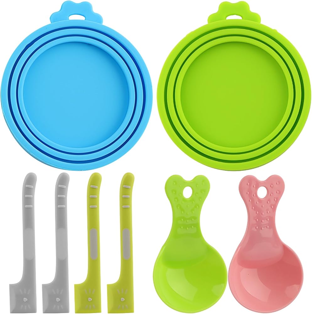 【INCLUDED CAN LIDS】To further aid in preserving the freshness of canned pet food, our set comes with 2 can lids. These lids create an airtight seal, keeping the food inside the can securely stored and protected from contamination. They are easy to use and fit most standard-sized pet food cans.