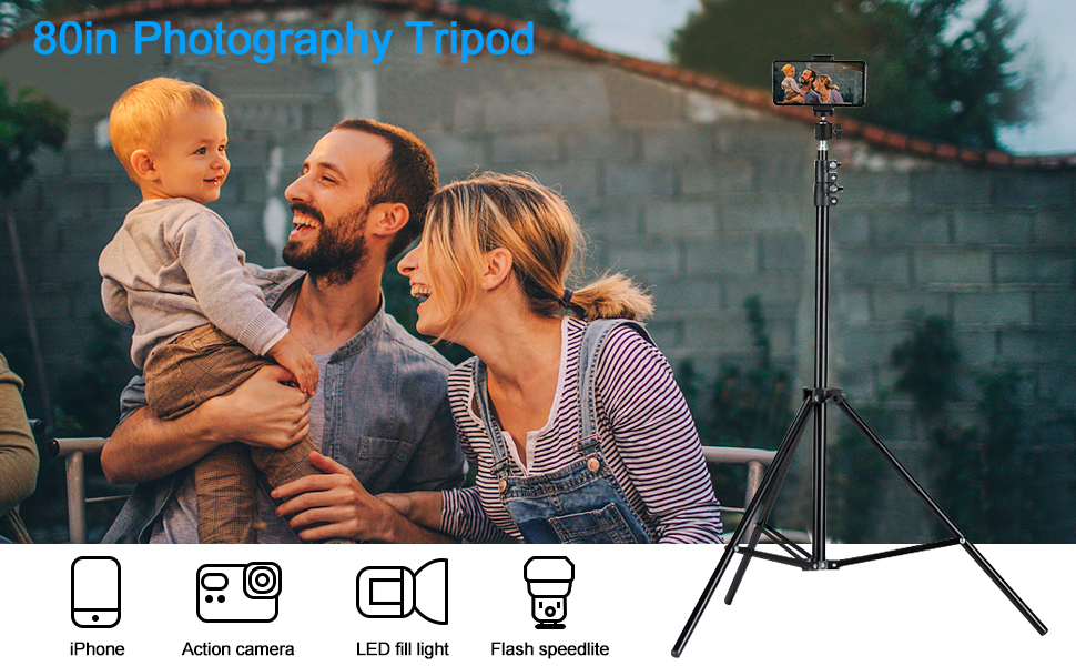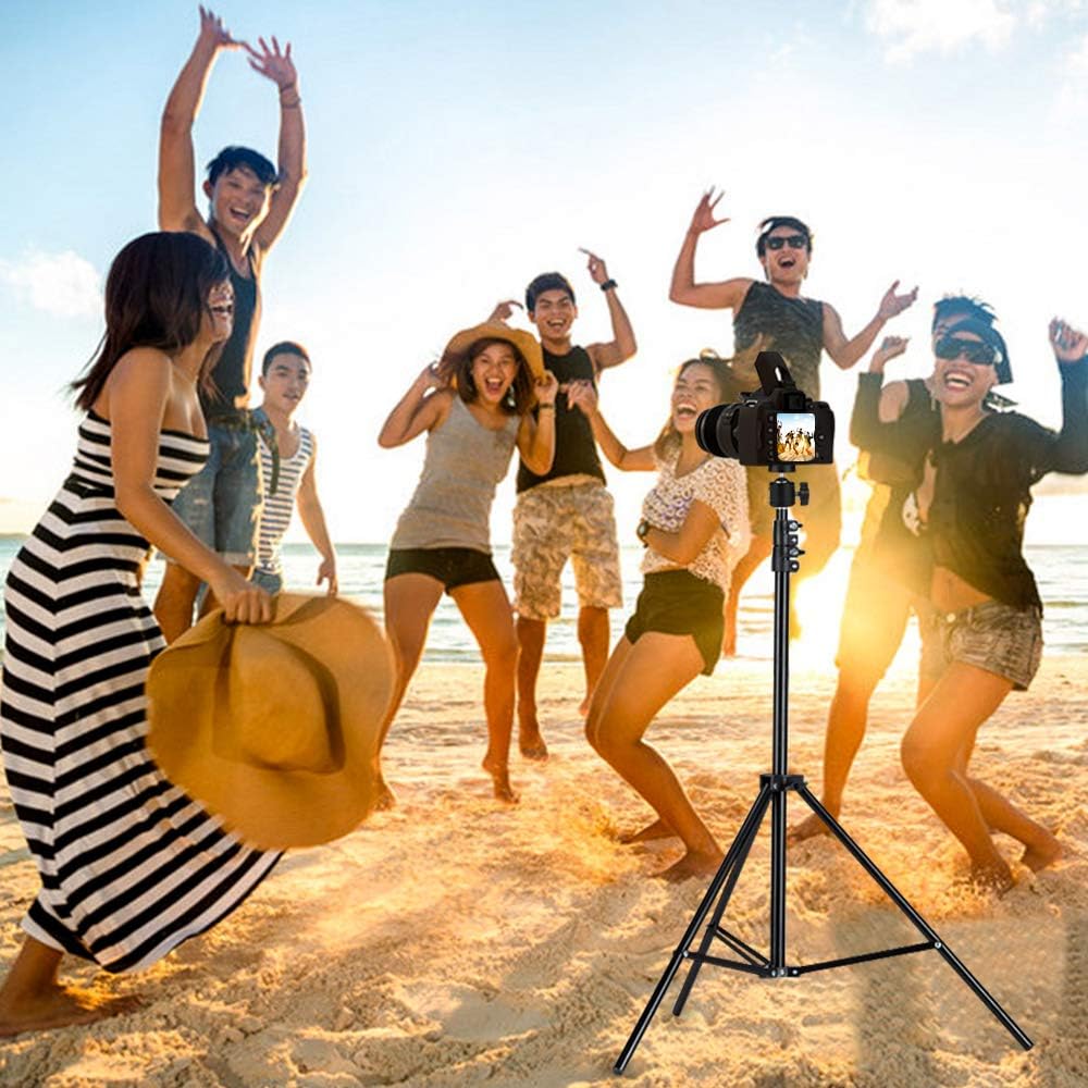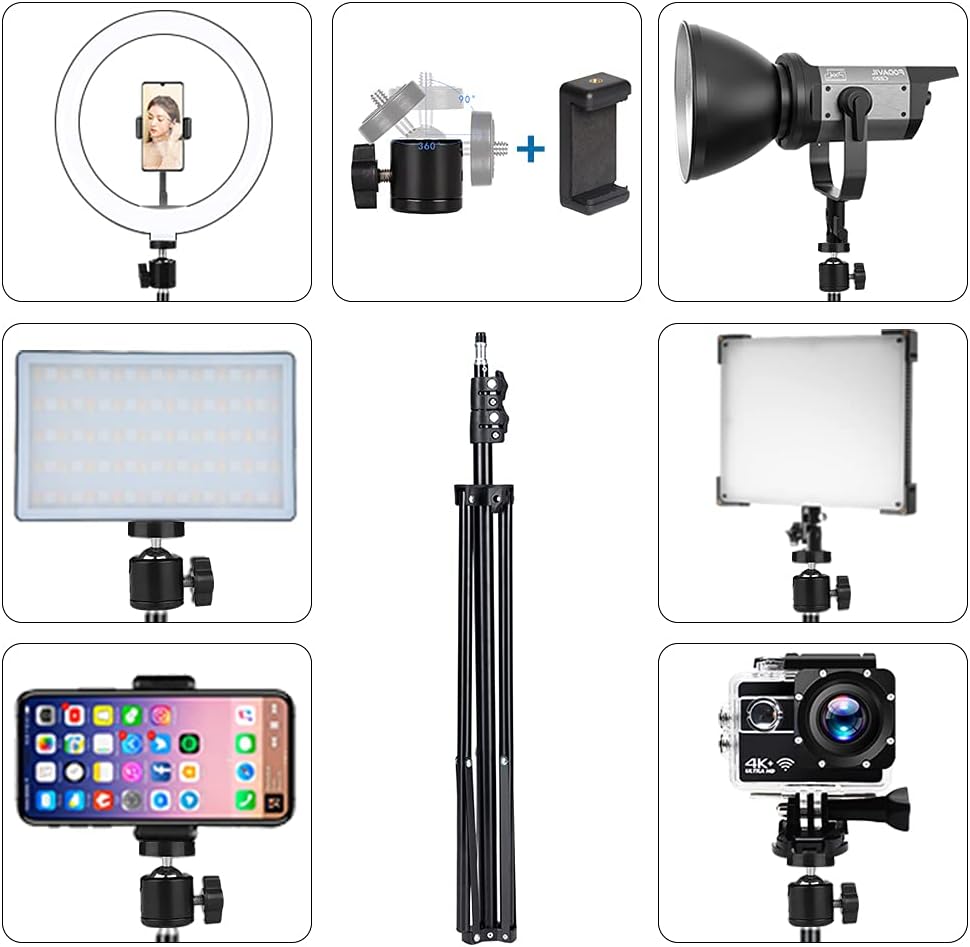 【حامل ثلاثي للهاتف قابل للتعديل الارتفاع】الارتفاع من 27 بوصة إلى 80 بوصة قابل للتعديل، مصنوع من سبائك الألومنيوم عالية الجودة، ومقاوم للتآكل، ولن يصدأ. إنه خيار جيد لتسجيل مقاطع الفيديو ومدونات الفيديو والبث المباشر.