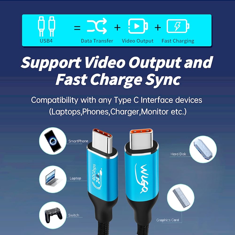 نقل البيانات بسرعة البرق: مع سرعة نقل البيانات الفائقة التي تصل إلى 40 جيجابت في الثانية، يضمن كابل USB4 نقل الملفات بسرعة وكفاءة، مما يسمح لك بمزامنة بياناتك في ثوانٍ.
