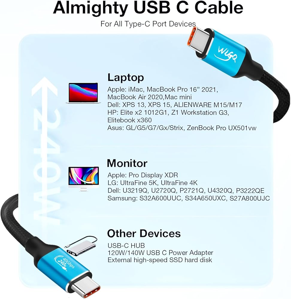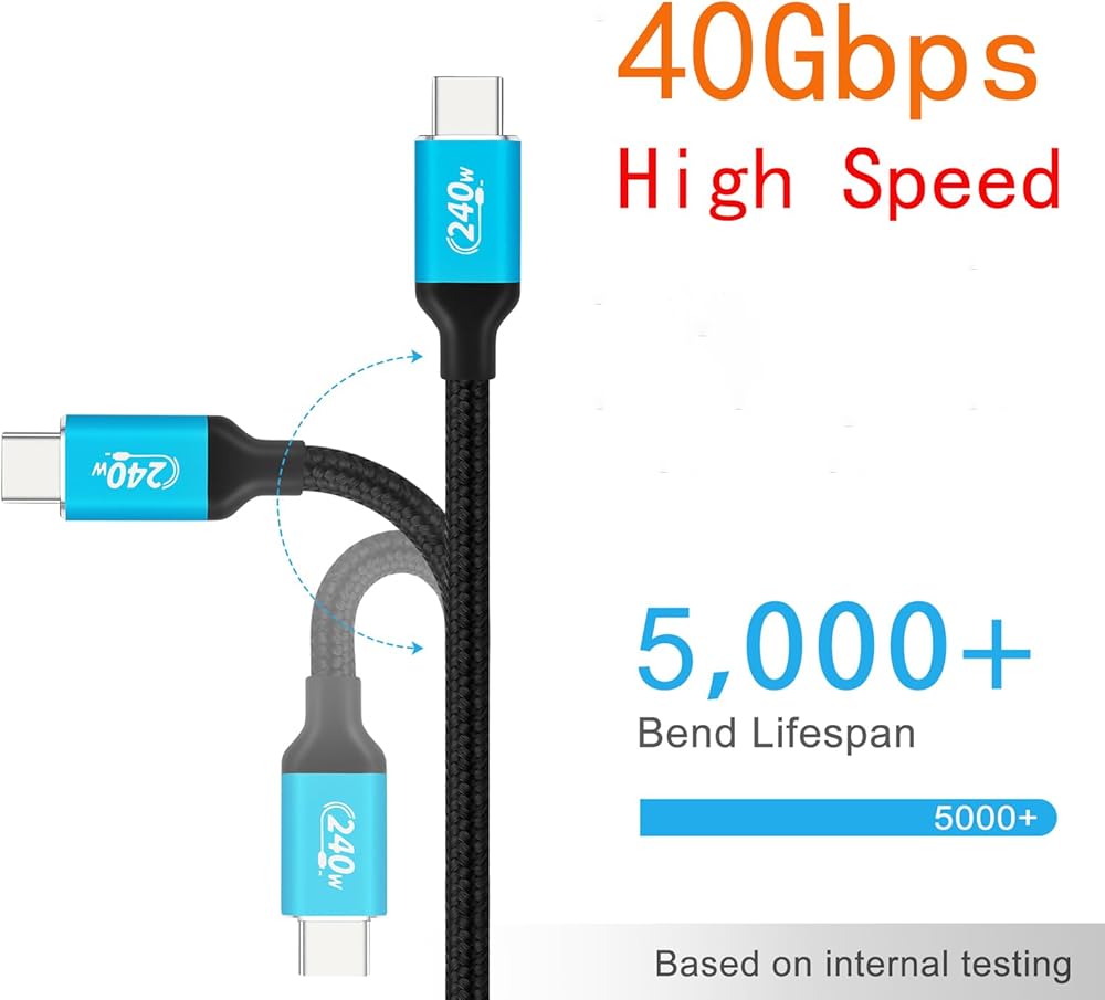شحن عالي الطاقة: يدعم كابل USB4 توصيل طاقة يصل إلى 240 وات، مما يجعله مثاليًا لشحن أجهزة USB-C الخاصة بك بأقصى سرعة. قل وداعًا للشحن البطيء وحافظ على تشغيل أجهزتك في وقت قصير.