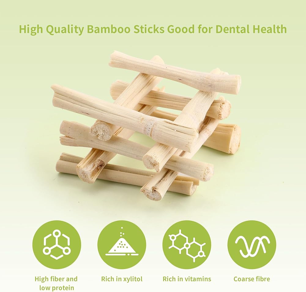 • Size: Bamboo chew sticks are approximately 4.5 inches long and 0.4 inches in diameter