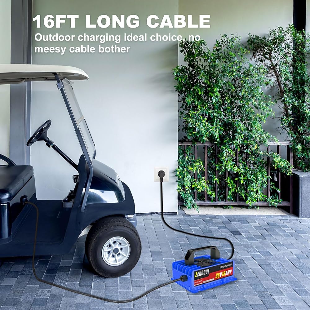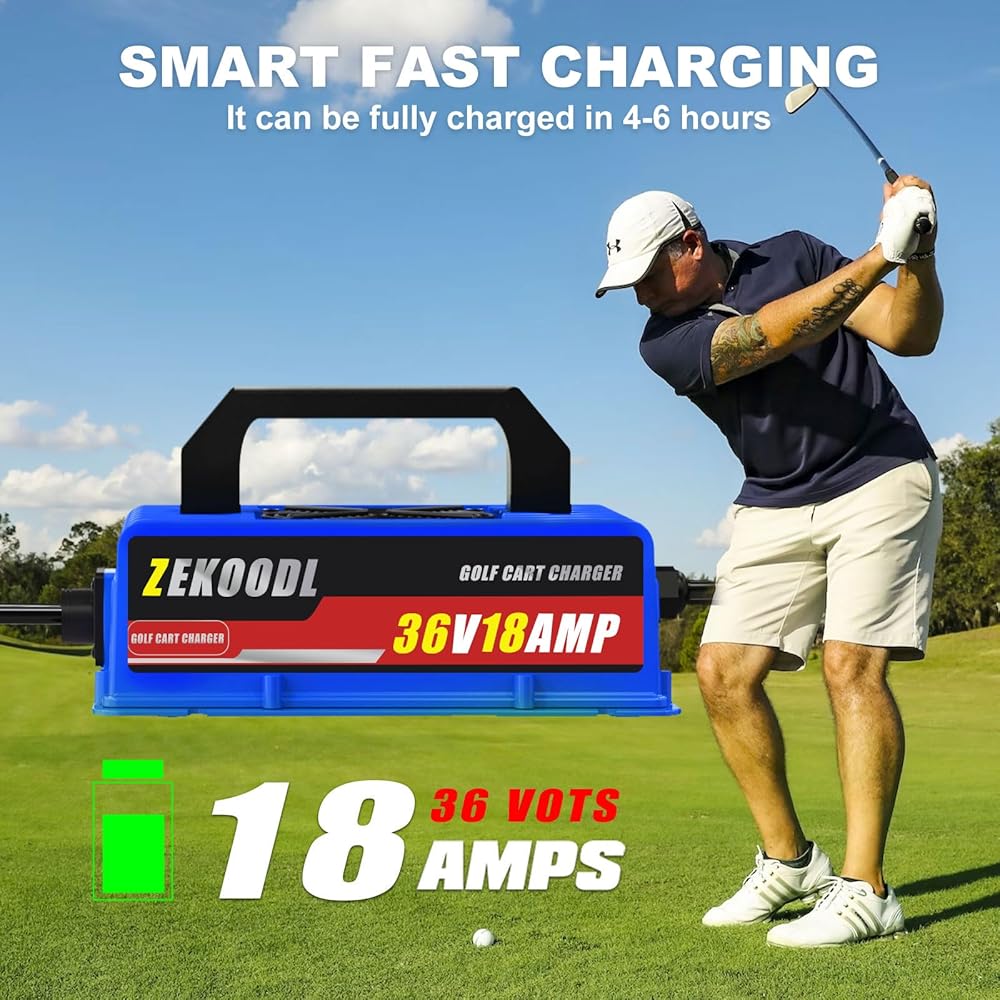 شاحن بطارية عربة الجولف 18 أمبير 36 فولت لـ EZGO TXT مع قابس نمط D، شحن ذكي، استبدل شاحن EZGO 36 فولت، 4-6 ساعات شاحن عربة جولف محمول كامل الشحن لبطارية حمض الرصاص، كابل 16 قدم