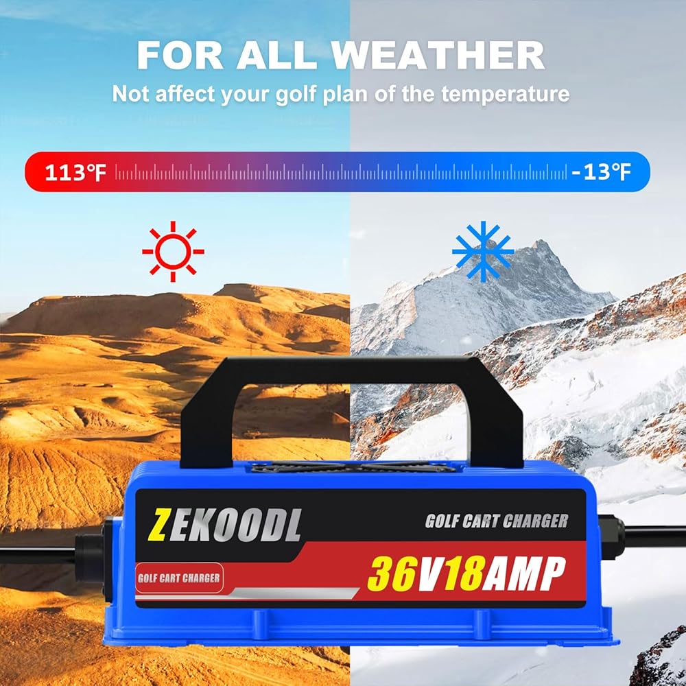 • 【شحن سريع وتوافق واسع】يحتوي شاحن ZEKOODL EZGO TXT على مخرج 36 فولت/18 أمبير/900 واط، مما يوفر شحنًا سريعًا وفعالاً لبطارية عربة الجولف EZGO TXT الخاصة بك، قابس Powerwise من النوع "D"، متوافق مع Powerwise EZ28115-G04، 28115G01 ، Sy19300-88، Lestronic II 602718، Delta-Q 9153610، إلخ. استبدل شاحن عربة الجولف Ez-go بقدرة 36 ​​فولت بنفس المنفذ والجهد