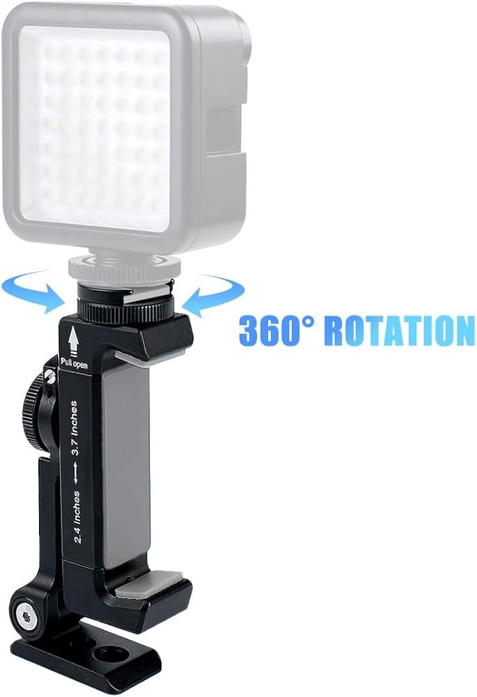 Newest and Unique Cold Shoe Design: this is the first invention that the cold shoe on top can be rotated, now you can adjust any angle for your microphone ,led light or other devices you mount on the cold shoe,and adjust any angle you want without uninstall the devices.