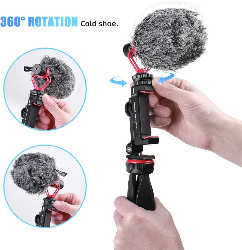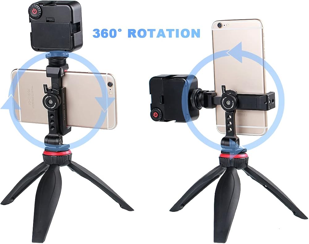 حامل ثلاثي للهاتف من الألومنيوم العالمي مع حذاء بارد قابل للتدوير، دوران 360 درجة وزاوية إمالة، iPhone 13 12 11 Max Pro Samsung محول حامل ثلاثي القوائم، مشبك حامل هاتف لحامل ثلاثي القوائم، مرفق جهاز تسجيل فيديو Vlog