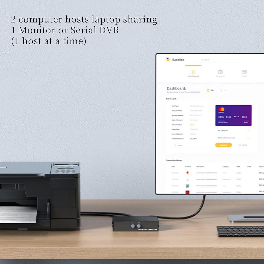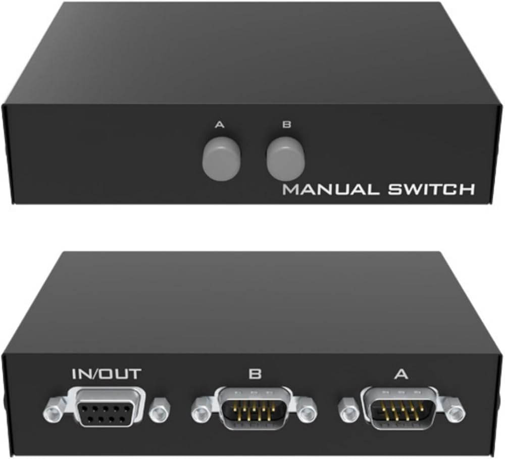 Brand Repima Serial RS232 DB9Pin Switcher Sharer 2 in 1 out 1 in 2 out Bi directional swap (1 host at a time) 2 computer hosts laptop sharing 1 monitor or serial hard drive Black. The Serial DB9 Pin RS232 Switcher Sharer 2 In 1 Out is a useful device with a 2 in 1 out connector that allows you to access an RS232 source in a 2 port RS232 input switcher, such as 2 computer mainframes, laptops externally connected to 1 monitor or serial hard disk device. Connects across serial lines. The switcher also has 1 input port and 2 output ports for connecting 2 external monitoring or serial hard disk devices. 1 computer host laptop input, 2 external monitoring or serial hard disk devices (for switching one of the monitoring or hard disk devices). Direct serial line connection, switching mode: manual button switching. The RS232 switch allows 2 in 1 out or 1 in 2 out bi directional interconversion, providing consistent quality and signal transmission to connected devices. Compatible with RS232 devices: such as computer mainframes, laptops and monitors, serial hard disks, instruments, controllers and more. Color: Black, Product Size: 12x3x9 cm. RS232 Serial Switcher Shared 2 in 1 out is a powerful, high performance device for home entertainment systems, conference rooms, showrooms, industrial controls, etc. It allows you to easily externalize 2 computer hosts to a monitor or serial hard drive (1 host at a time).