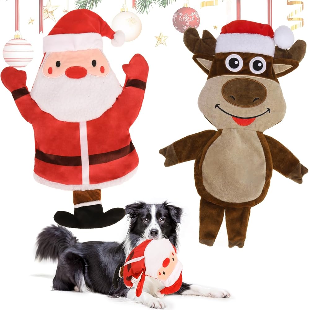 ألعاب Bingpet Dog speceaky ، 2 حزمة لا حشو ألعاب كلب عيد الميلاد ، الرنة وسانتا التفاعلية أفخم مع كرة صاخبة وورق مترجع ، متعة العطلة متينة للكلاب الصغيرة المتوسطة الكبيرة