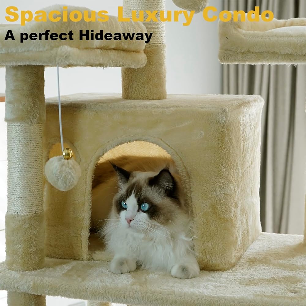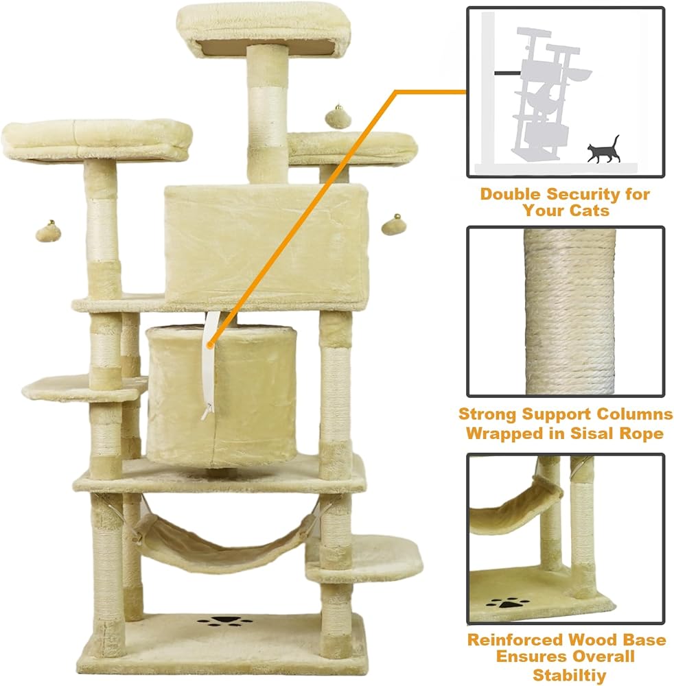 طويلة وثابتة: يبلغ طول شجرة القطط الكبيرة هذه 67 بوصة. ولكن مع قاعدة كبيرة معززة لتحقيق الثبات، ومجموعة مضادة للطرف لتجنب التذبذب أو الانقلاب.