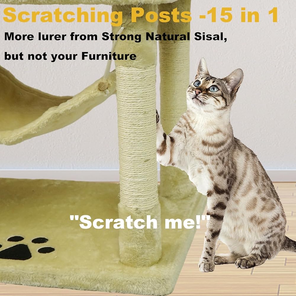أعمدة خدش القطط: أعمدة خدش طبيعية مغطاة بالسيزال على كل طبقة لخدش قطتك وطحن مخالبها، وتطوير عادة الخدش الإيجابية الخاصة بها وبعيدًا عن أريكتك.