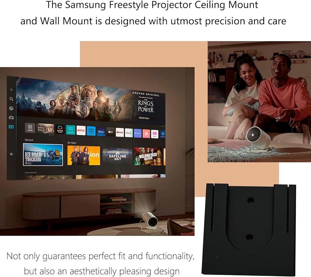 • The Ceiling Mount and Wall Mount for Samsung Freestyle Projector is designed with utmost precision and care.not only guarantees perfect fit and functionality, but also an aesthetically pleasing design.Ensures stability and durability.