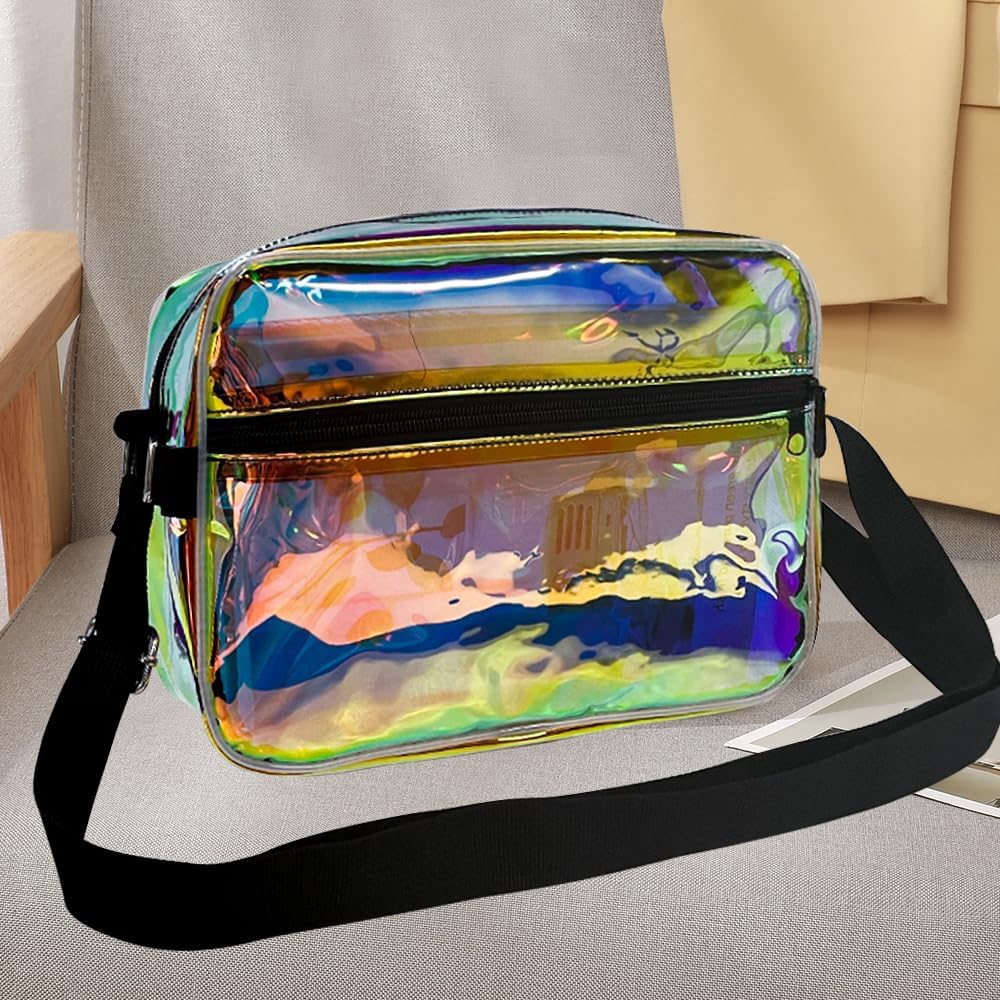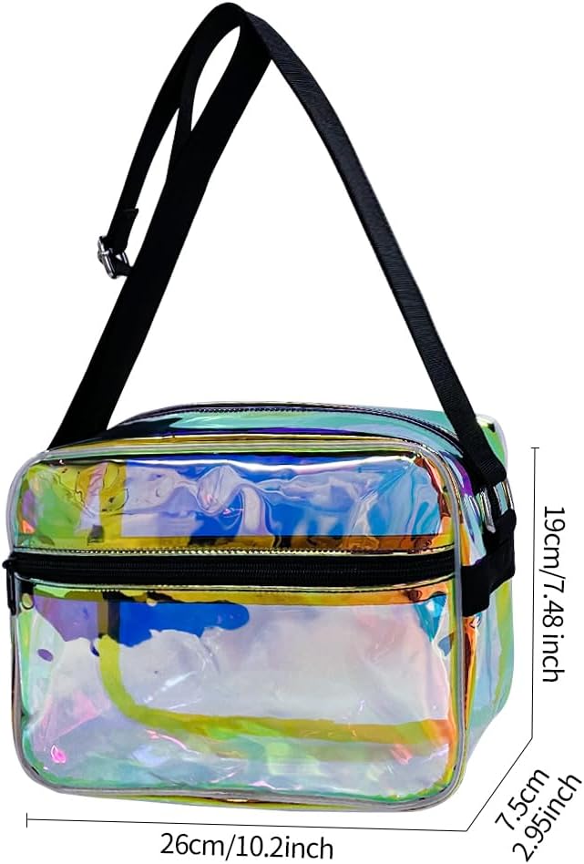 Holographic Shoulder Bag for Women, iridescent Messenger Bag for Concert,Waterproof Clear tote Bag