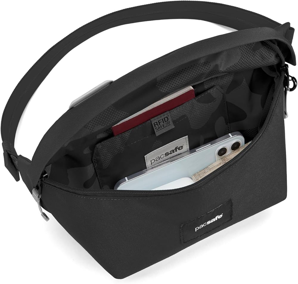ANTI-THEFT - With the wire reinforced dual release buckle strap, sling can be secured to table or chair to keep unattended belongings secure. Zip pullers attachable to hook to deter pickpockets. Cut Proof Material (lightweight steel mesh) to prevent theft.