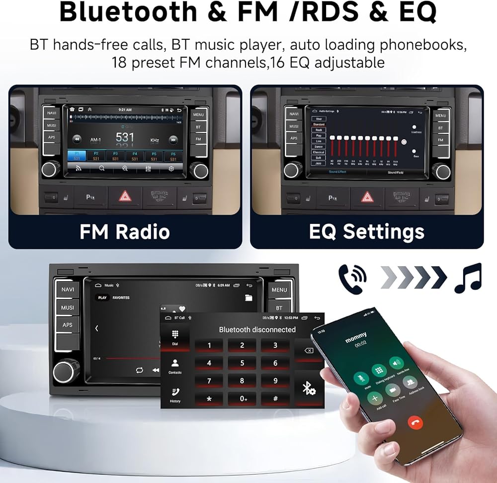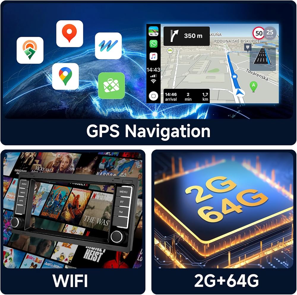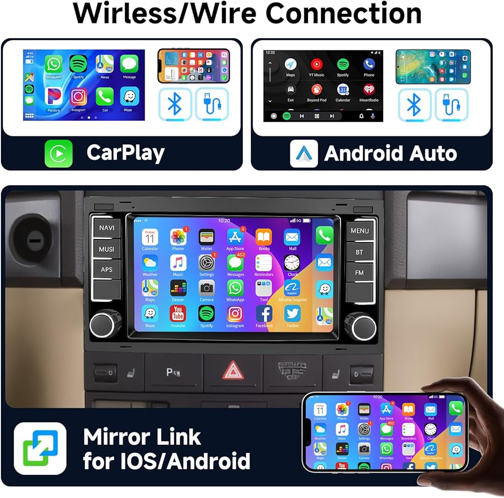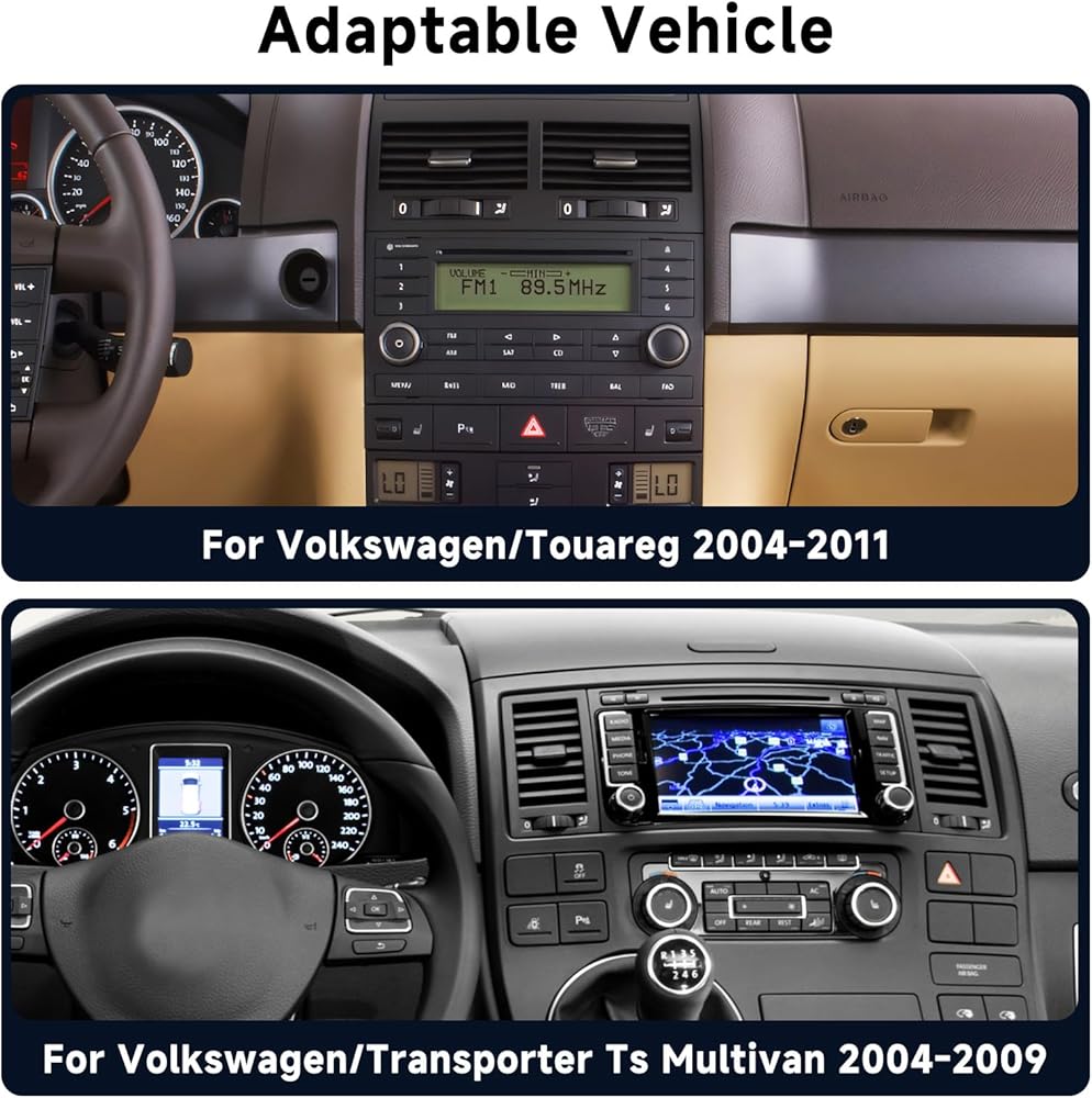 Wireless Carplay & Android Auto &Mirror Link: The double din car stereo The radio for VW Touareg 2004-2011 for VW T5 T6 Multivan 2004-2009 supports wireless connectivity for easy access to features on mobile phone, such as Google, GPS navigation, Facbook, contacts, messaging, access to basic apps via voice control, switch music, adjust the volume, search for navigation addresses to promote safe driving