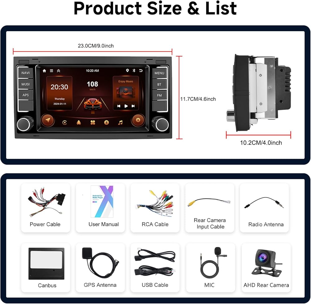 Reversing Video & Steering wheel Controls : Supports rear camera input, built-in Rear CameraInput Cable, automatically switches to reverse video when switching to reverse gear to assist parking. Built-in canbus, support original steering wheel button learning function, easy to control music switching, video playback, volume adjustment, answer phone calls