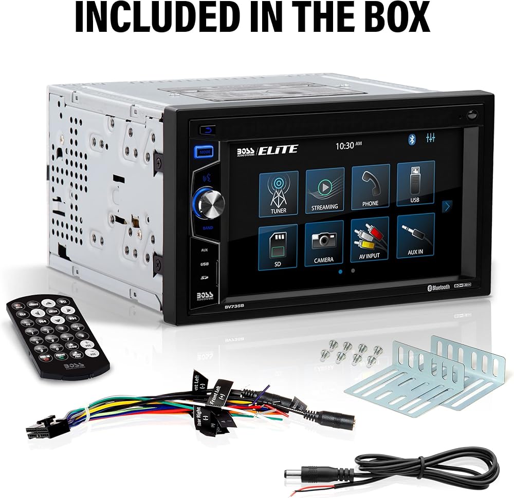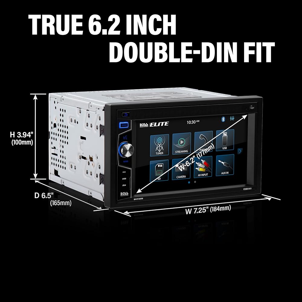 أنظمة الصوت BOSS BV735B ستيريو السيارة - Din مزدوج، شاشة لمس 6.2 بوصة، بلوتوث، بدون مشغل DVD CD، مستقبل راديو AM/FM، جهاز تحكم عن بعد لاسلكي، A-Link (مرآة الشاشة)