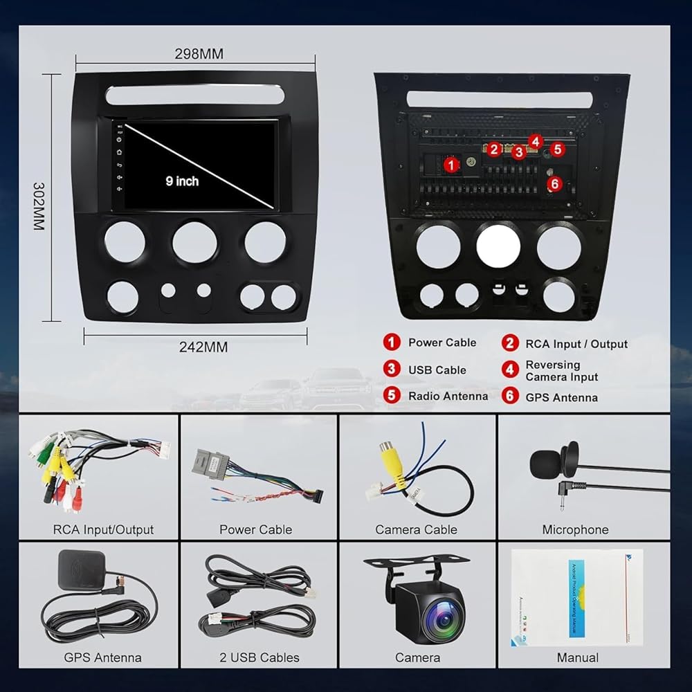 ✅راديو سيارة Hummer H3 - يعد راديو Android المحدث هذا مثاليًا لطراز سيارة Hummer H3 لعام 2005 2006 2007 2008 2009 2010. تتضمن الحزمة وحدة راديو Hummer H3 وكابل الطاقة وكاميرا احتياطية مجانية عالية الدقة 1080P وميكروفون خارجي وهوائي نظام تحديد المواقع وما إلى ذلك. متصلاً بشبكة WiFi أو نقطة اتصال، ستقود باستخدام ستيريو السيارة الذكي تمامًا مثل جهاز iPad.