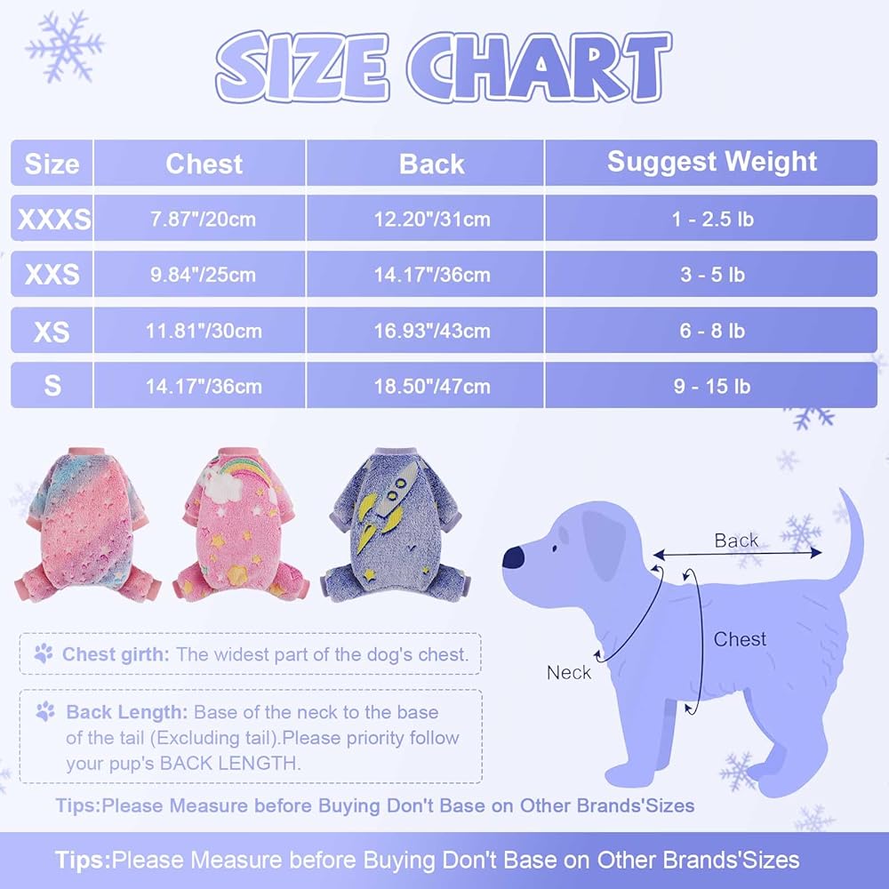 ملاحظة المقاس: يرجى التأكد من الرجوع إلى مخطط المقاسات الخاص بنا قبل الشراء، بدلاً من اختيار المقاس الذي عادة ما تطلبه مباشرة للشراء مباشرة، ✔ النطاقات ✔ - بيجامات للكلاب في الطقس البارد للكلاب الصغيرة من 1 رطل إلى 15 رطلاً من الحيوانات الأليفة.