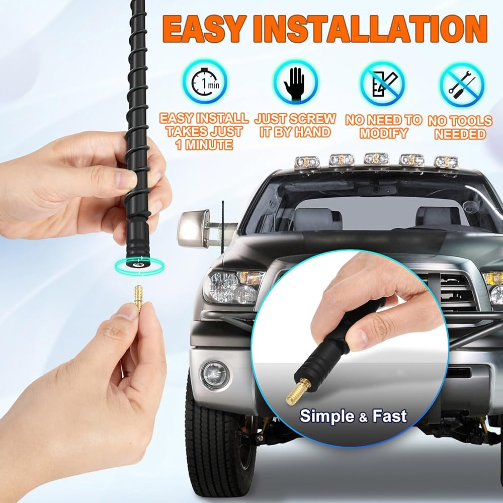 MODERN APPEARANCE: Install this black rubber antenna, It will look very stylish on your car. No tools required, installation is very easy and takes only a minute. Just unscrew the original antenna and install the included screw parts to screw it into the antenna. Finally, mount the antenna to the antenna base