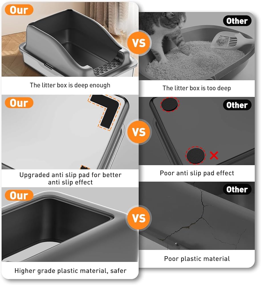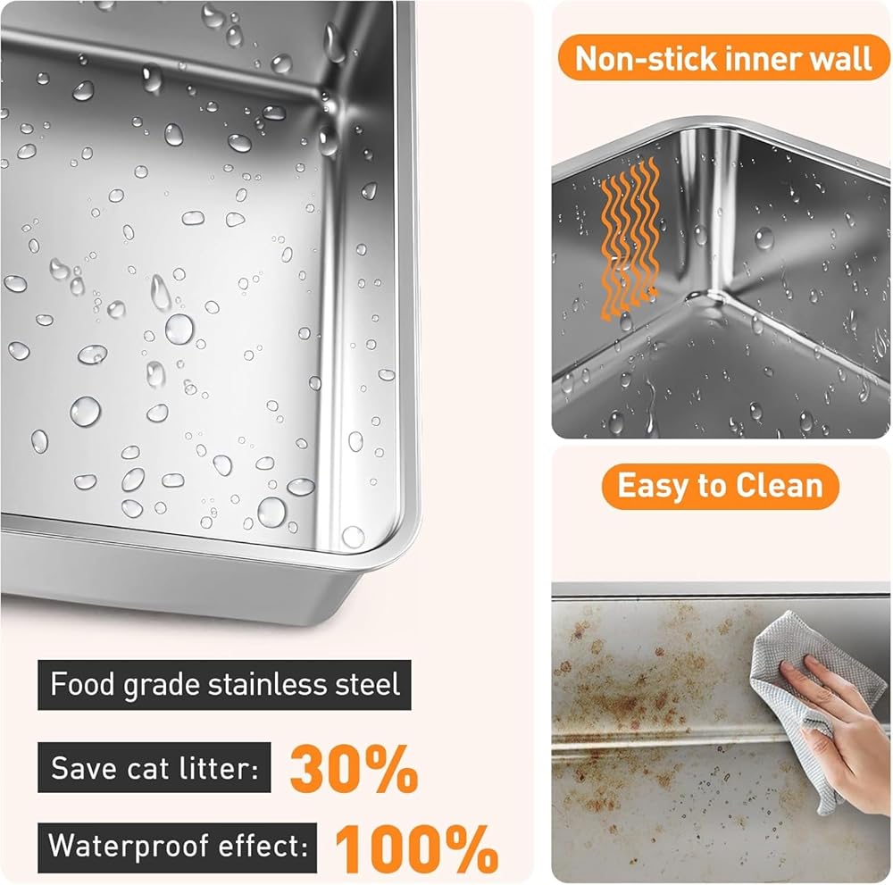 • 【متين من الفولاذ المقاوم للصدأ وعمر طويل، يمتص الروائح وسهل التنظيف】صندوق فضلات القطط المعدني عالي الجودة من الفولاذ المقاوم للصدأ غير لاصق ومقاوم للصدأ. سهل التنظيف ولا يترك أي روائح باقية وراءه يحافظ على صحة القطط. صندوق فضلات من الفولاذ المقاوم للصدأ. يضمن البناء القوي أن الصندوق يمكنه تحمل وزن قططك، عمر صندوق الفضلات المعدني أكثر من 5 مرات من صناديق الفضلات البلاستيكية الأخرى.