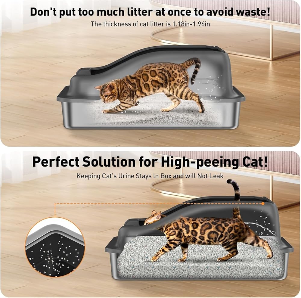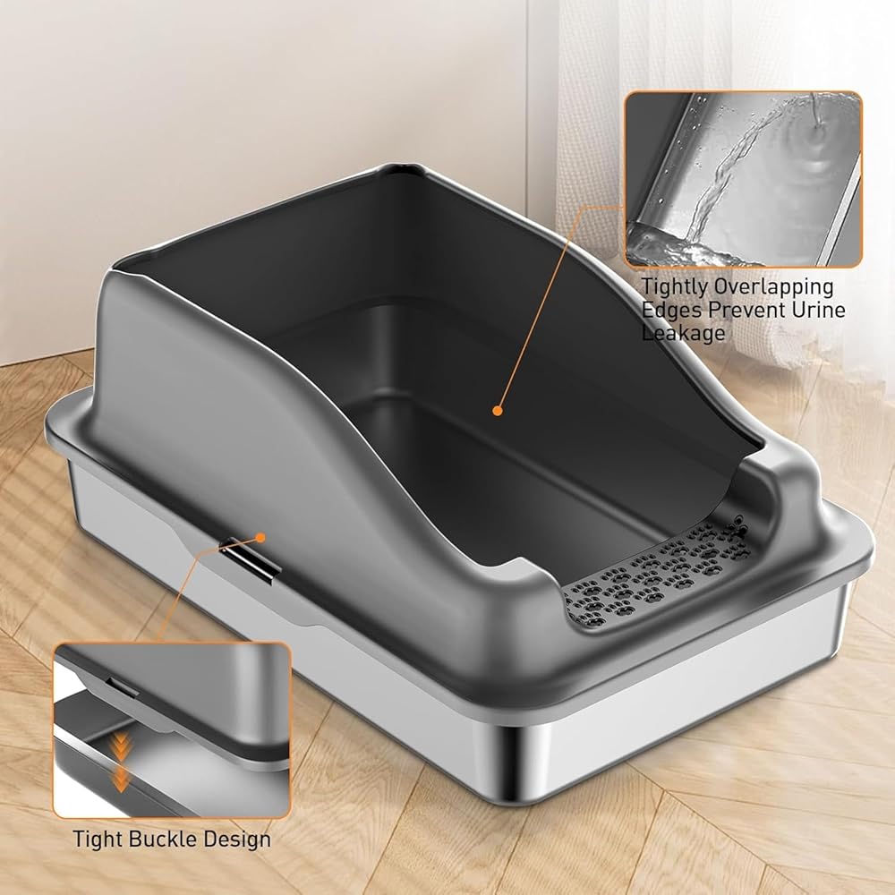 • 【تصميم صندوق فضلات من الفولاذ المقاوم للصدأ مانع للتسرب】صندوق فضلات القطط المعدني مصمم بتصميم مانع للتسرب، بما في ذلك قاعدة محكمة الغلق وشكل منحني. إغلاق فائق - يقلل من خطر تسرب البول من خلال الشقوق. مثالي للقطط التي تعاني من ارتفاع كمية البول. صندوق الفضلات المعدني يحافظ على منزلك نظيفًا وبدون رائحة.