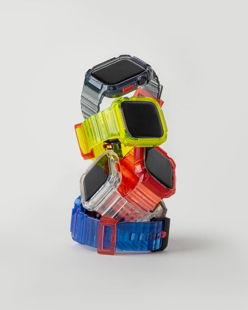 2-in-1 watch case and strap featuring SAIDO's signature vibes. Clear design paired with bold colours for statement protection and comfort you can strap on.