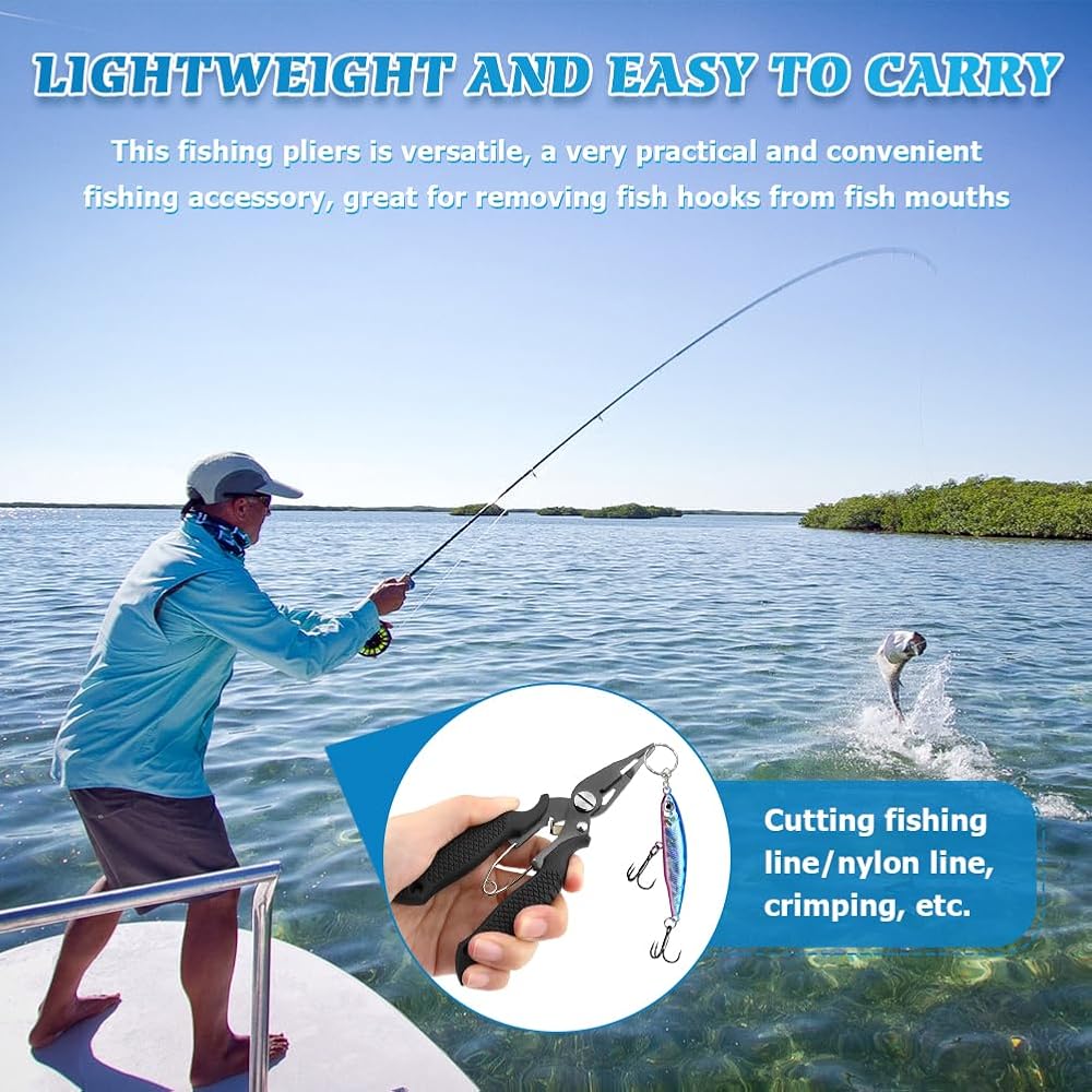 【GREAT GIFT】The fishing plier and lanyard set is a must-have tool in any angler's tackle box. It is suitable for any fishing novice or experienced person. It is lightweight and easy to carry. It makes a great gift for family or friends.