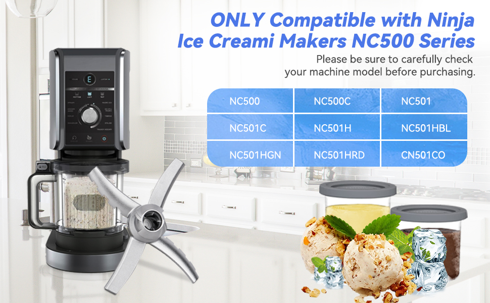 【متوافق تمامًا】يتوافق استبدال شفرة المجداف هذه لـ Ninja Creami فقط مع صانعي الآيس كريم من سلسلة Ninja NC500، بما في ذلك NC501، NC500، NC500C، NC501C، NC501H، NC501HBL، NC501HGN، NC501HRD وCN501CO. ليس لصانعي الآيس كريم نينجا كريمي (سلسلة NC300) أو بريز (سلسلة NC100/NC200).