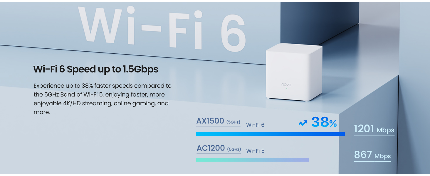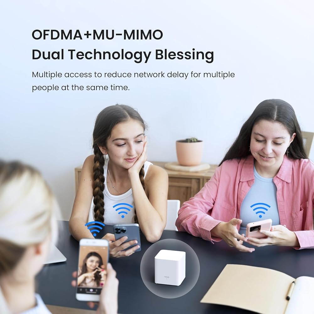 𝐇𝐢𝐠𝐡 𝐂𝐚𝐩𝐚𝐜𝐢𝐭𝐲 - مدعومًا بتقنية MU-MIMO وOFDMA، يوفر نظام AX1500 Daul-Band Nova Mesh Wi-Fi شبكة Wi-Fi عالية السرعة لجميع أجهزتك ويوفر تجربة خالية من التأخر لأكثر من 80 جهازًا