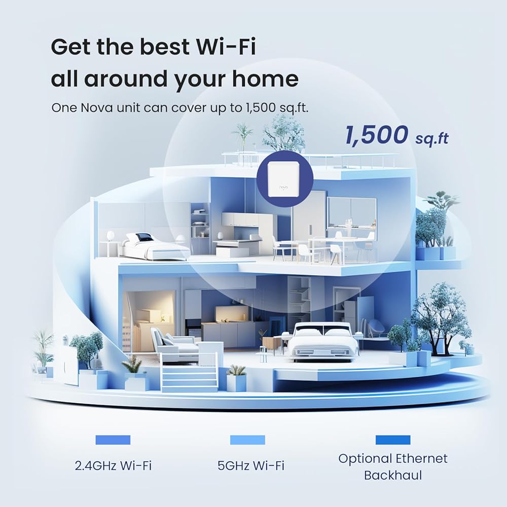 𝐇𝐢𝐠𝐡 𝐂𝐚𝐩𝐚𝐜𝐢𝐭𝐲 - مدعومًا بتقنية MU-MIMO وOFDMA، يوفر نظام AX1500 Daul-Band Nova Mesh Wi-Fi شبكة Wi-Fi عالية السرعة لجميع أجهزتك ويوفر تجربة خالية من التأخر لأكثر من 80 جهازًا