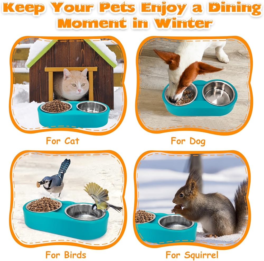 وعاء القطط الساخن في الهواء الطلق، وعاء الماء الساخن للقطط، الفولاذ المقاوم للصدأ القابل للإزالة مع خالي من الثلج وخالي من مادة BPA، محطة تغذية القطط في الهواء الطلق للحيوانات الصغيرة والأرانب والدجاج وحمام الطيور في الشتاء