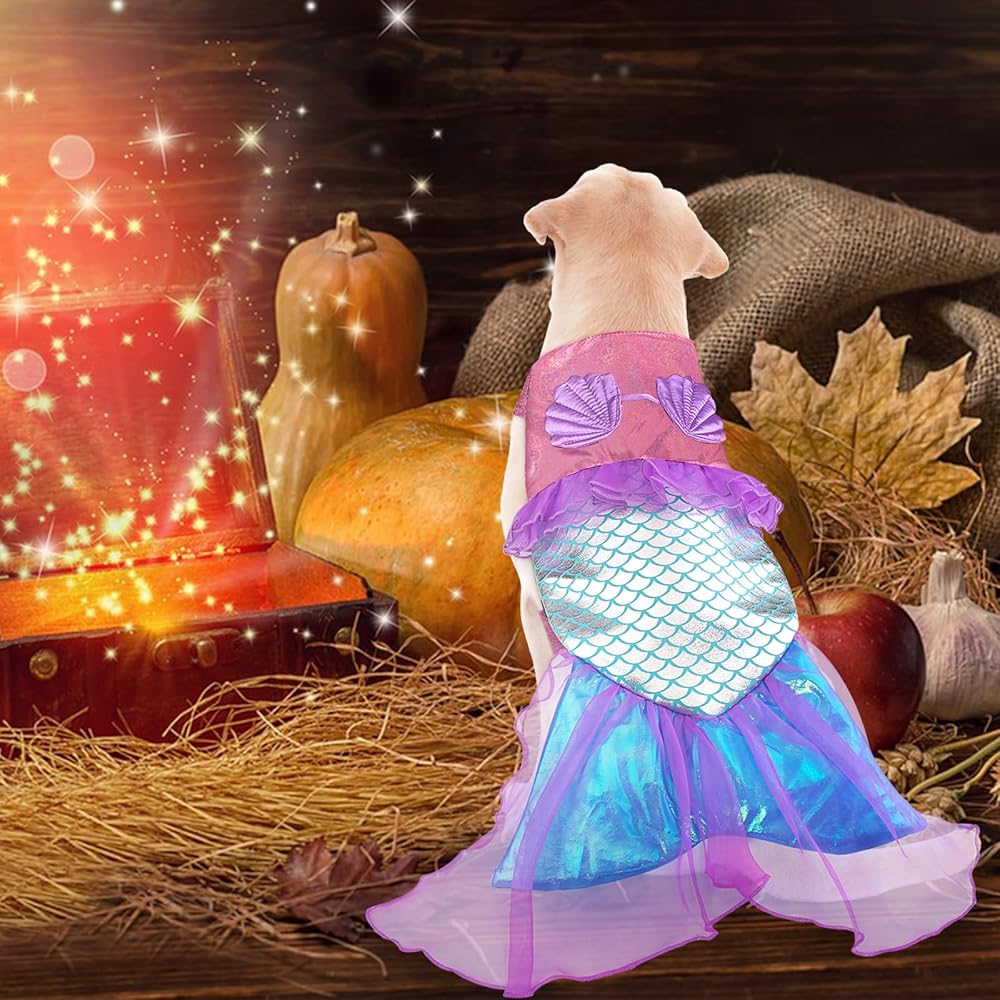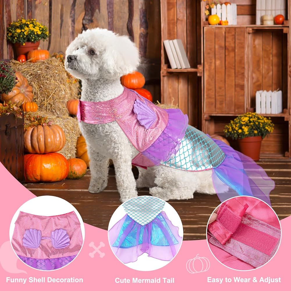 [زي حورية البحر المتلألئة للكلاب] أزياء حورية البحر المطورة للكلاب لعام 2024 هي الأكثر رواجًا في هذا الهالوين. أهم ما يميز زي الكلاب هذا هو ذيل حورية البحر اللامع النابض بالحياة مع شبكة أرجوانية. زي الحيوانات الأليفة الوردي مزين بأصداف البحر. ذيل حورية البحر المتلألئ وشبكة أرجوانية، مما يخلق تأثيرًا متلألئًا على شكل حراشف السمكة يلمع على الكلب. سيبدو الجرو الخاص بك وكأنه سبح للتو من أعماق المحيط!
